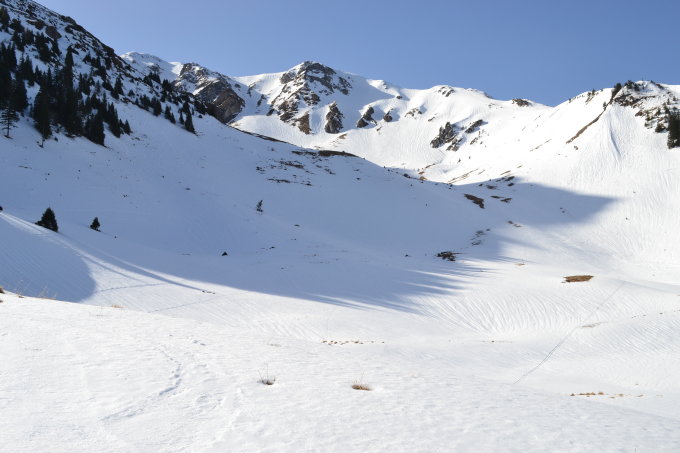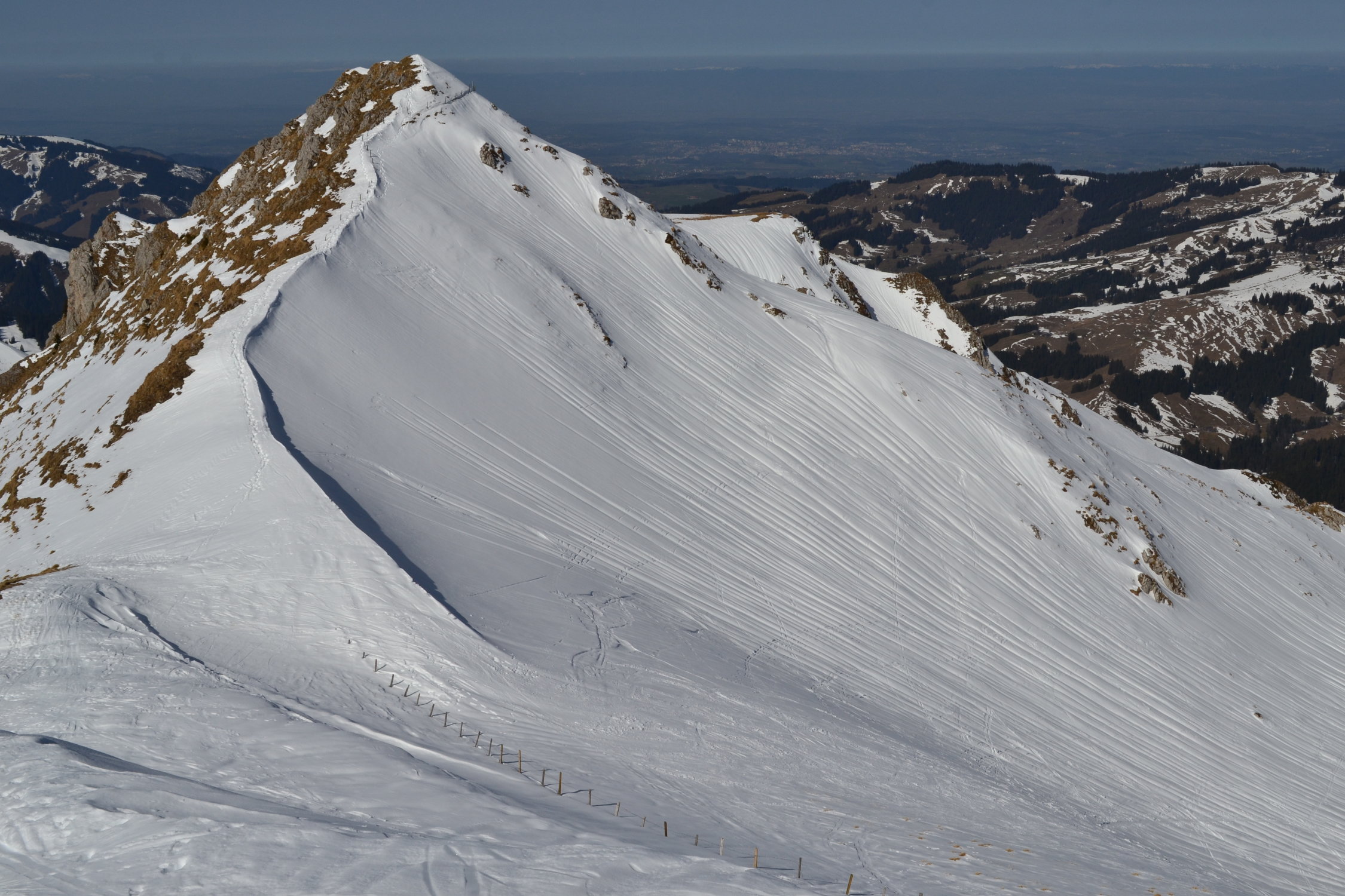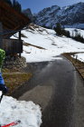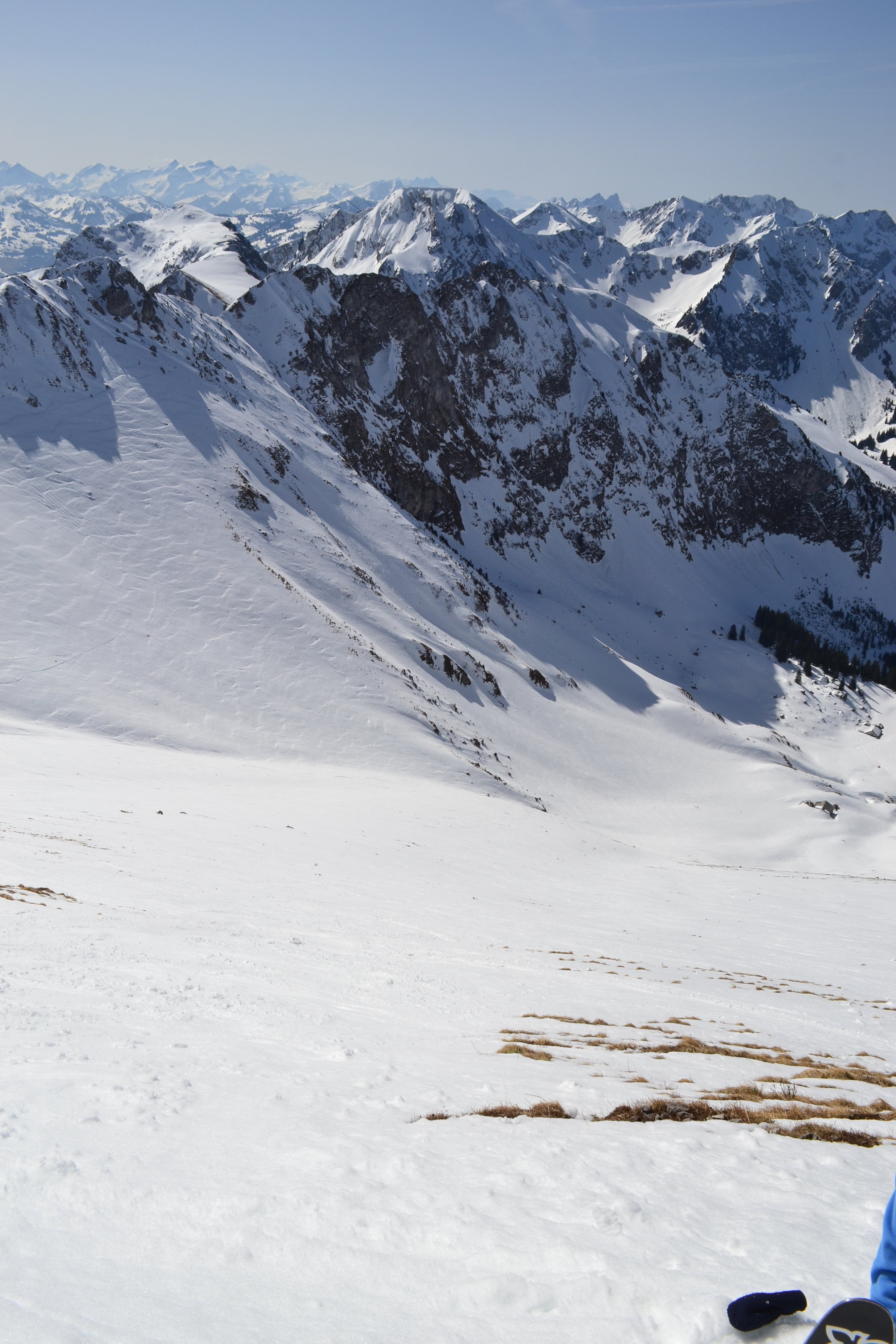 Der Teppich in der SW-Flanke ist nicht dick, aber im Moment noch problemlos durchgehend. 3 kurze Tragestellen bei Schwendli bis Hengstschlund.