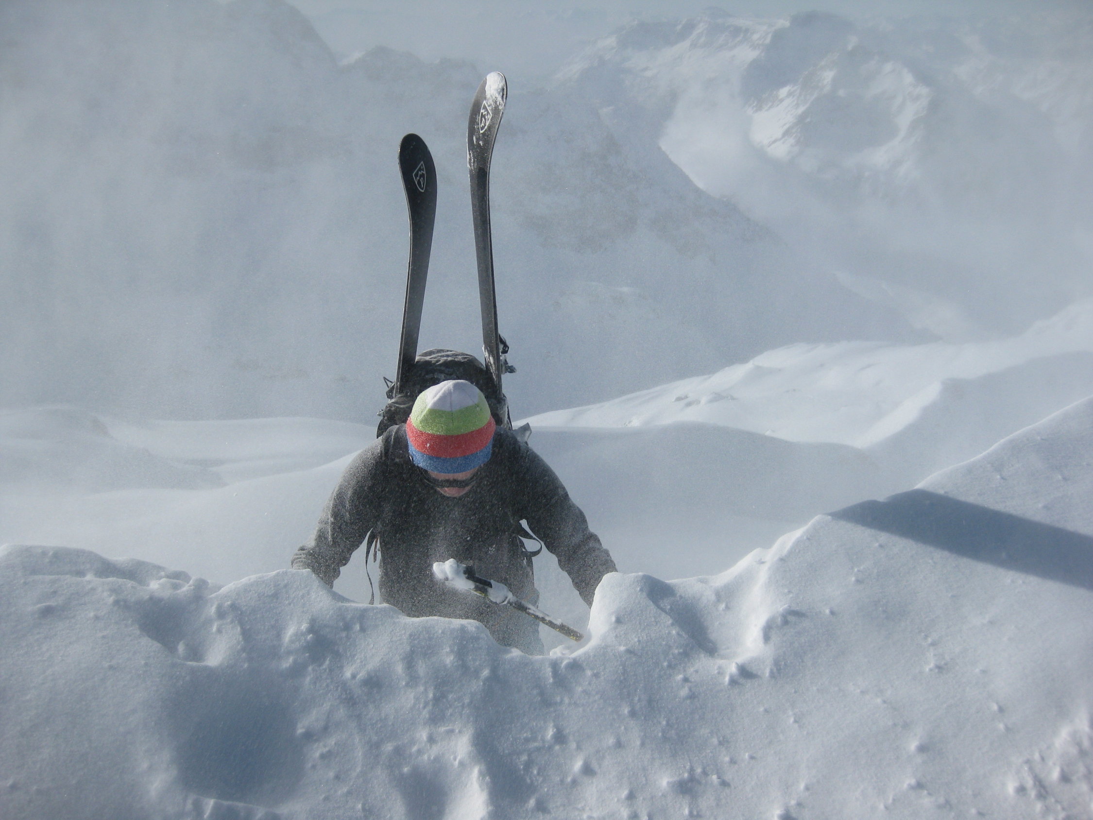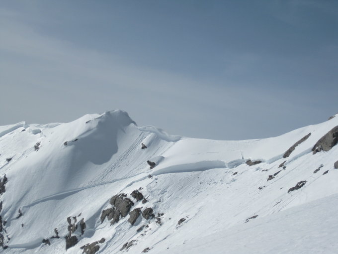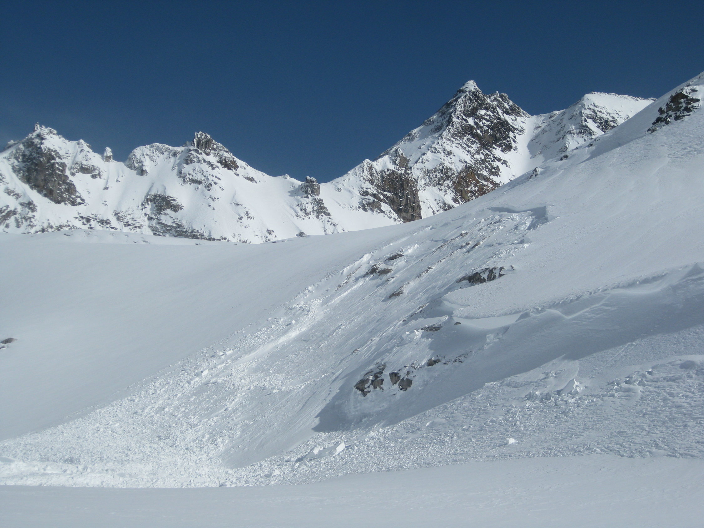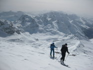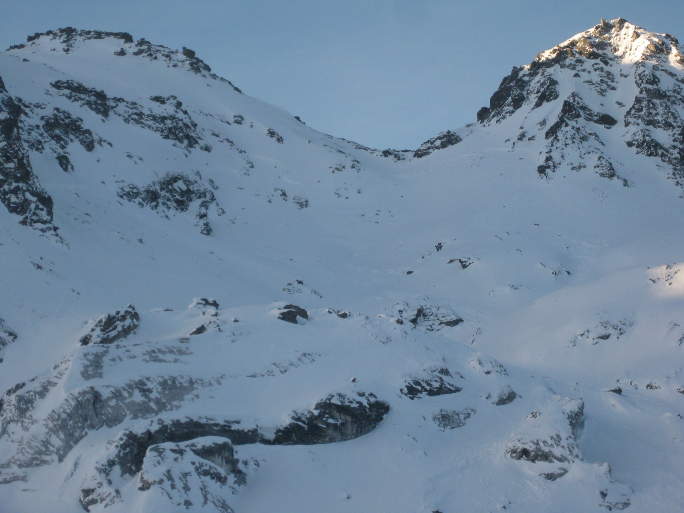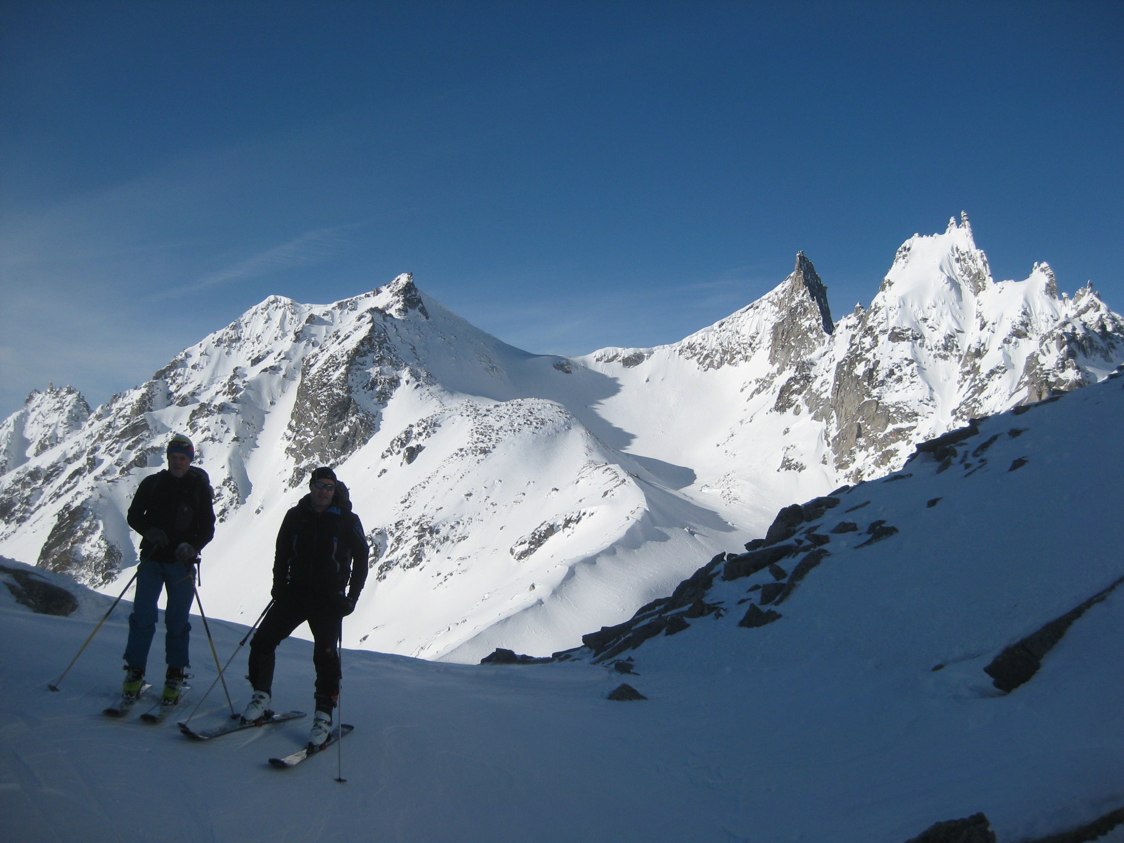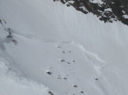 Die Verhältnisse sind gut aber es sind in den Tagen zuvor viele Bretter abgegangen. Wir sind anschließend zum Lago di Sabbione abgefahren und nach einem Zwischenstopp im Rif. Claudio Bruno über den Mittelbergpass zurück zur Binntalhütte. Achtung, starker Nordwind sorgt für ordentlich Schneeverfrachtung insb. im kammnahen Bereich. Am Mittelbergpass ist die Wächte gebrochen und ein Brett gekommen. Das ist die Schwachstelle um durchzukommen. Heute sind wir über den Passo di Valdeserta - Mittelbergpass zurück nach Fäld. Ab Mineraliengrube aufgrund der Schneeabdeckung etwas murksig, bis dahin sensationell.