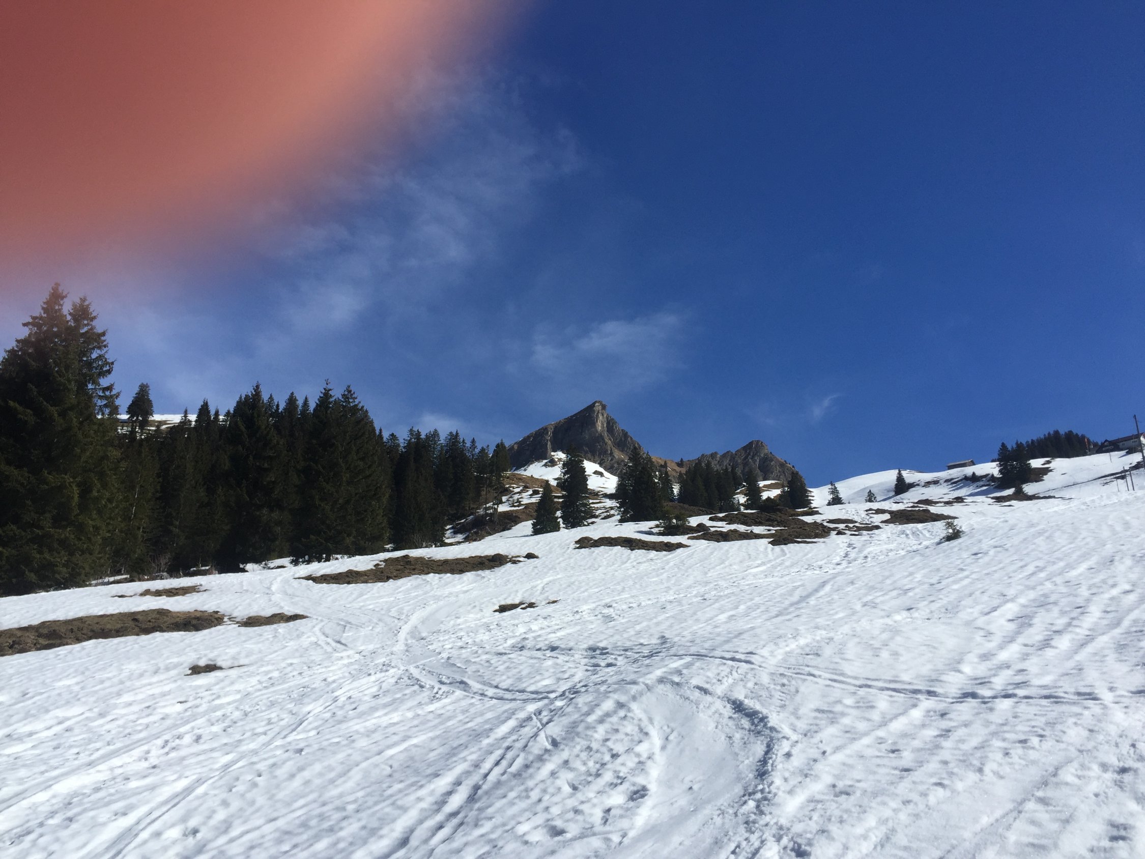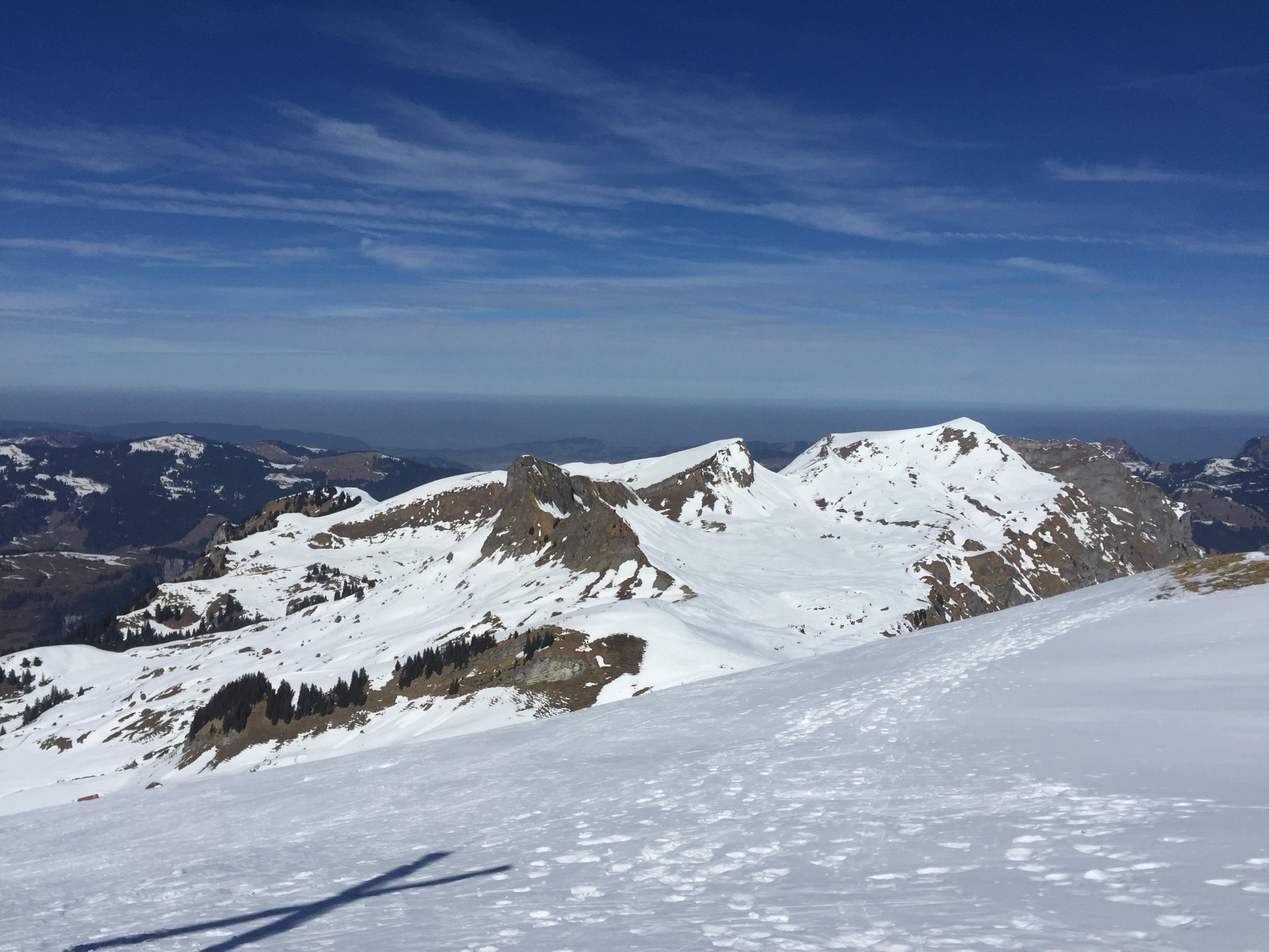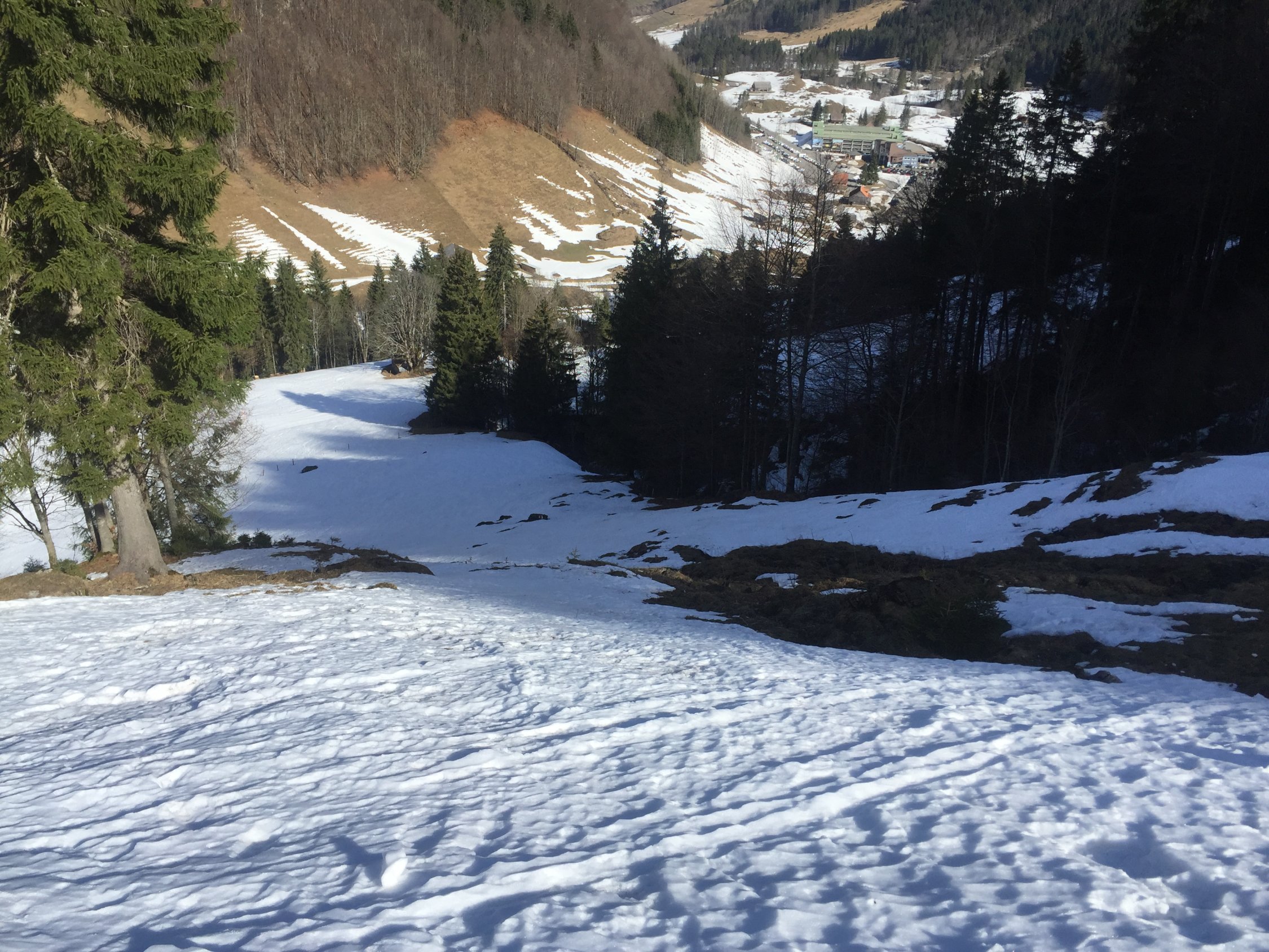 Die Schwyzer sind ein heimlifeisses Völkchen, haben so tolle Tourengebiete und schreiben kaum was darüber ins Forum :-). Es herrschen für die Touren ab Weglosen ausgezeichnete Verhältnisse, Schnee noch vom Parkplatz an und die Forststrasse zur Druesberghütte ist bis auf zwei ganz kurze Stellen noch gut gedeckt. Der Schnee ist durchwegs gut verfirnt. Aufstieg problemlos, wobei im ersten Steilstück bis zur Forststrasse und dann im Gipfelhang Harscheisen sehr angenehm, da bockhart. Sehr schöne Gipfelrast mit tollem Fernblick und netter Gesellschaft von recht wenigen anderen Tourengängern. Die Abfahrt war dann schön bis sehr schön, um 12.30 waren die Nordhänge immer noch gefroren, die eher östlichen Expositionen Richtung Schülberg aber al dente. So war genussvolles Schwingen möglich bis zur Forststrasse, und auf dieser dann rasch runter zum PP.