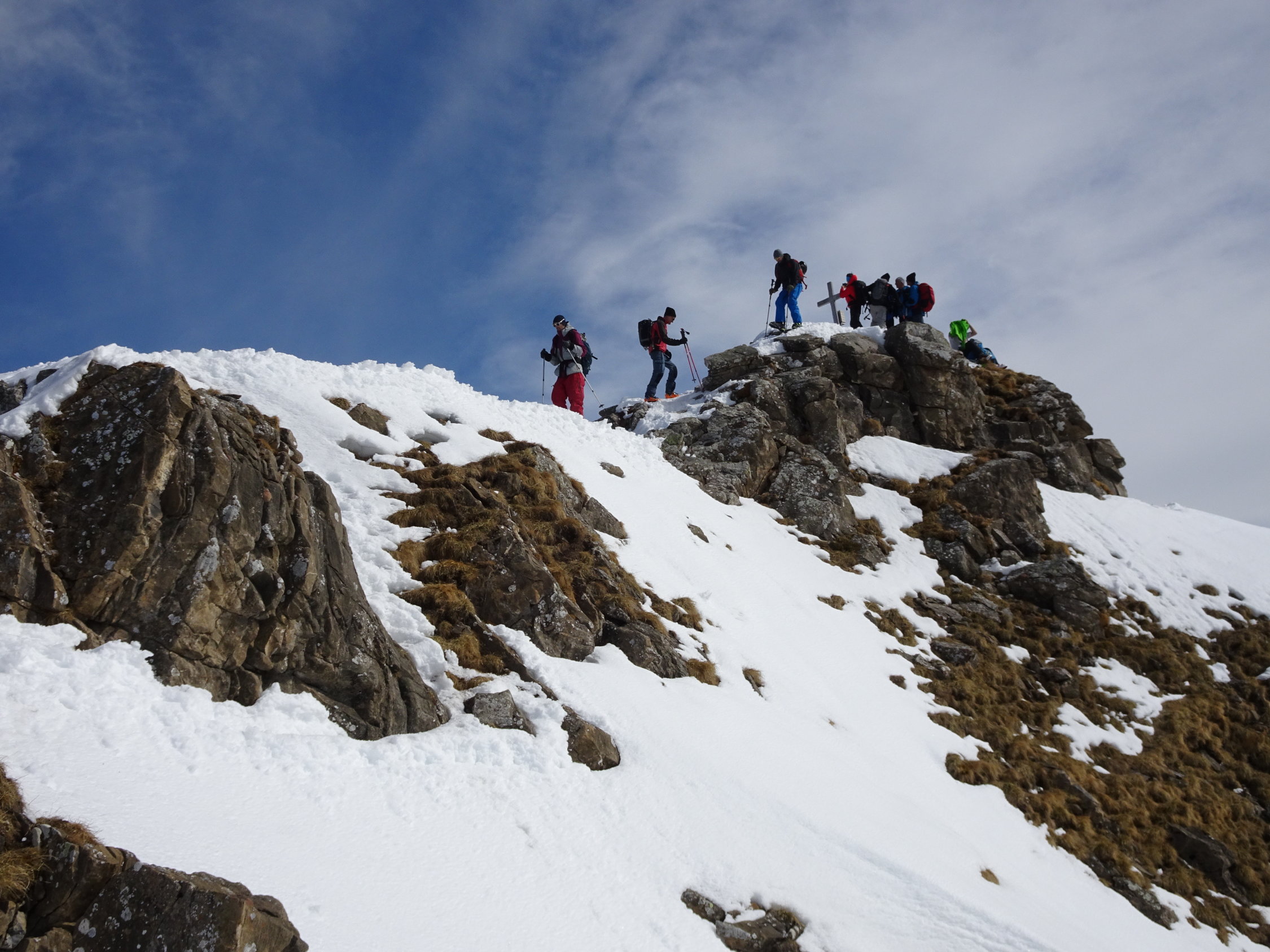 Steigeisen für den Gipfelgrat fakultativ. Es geht gut auch ohne.