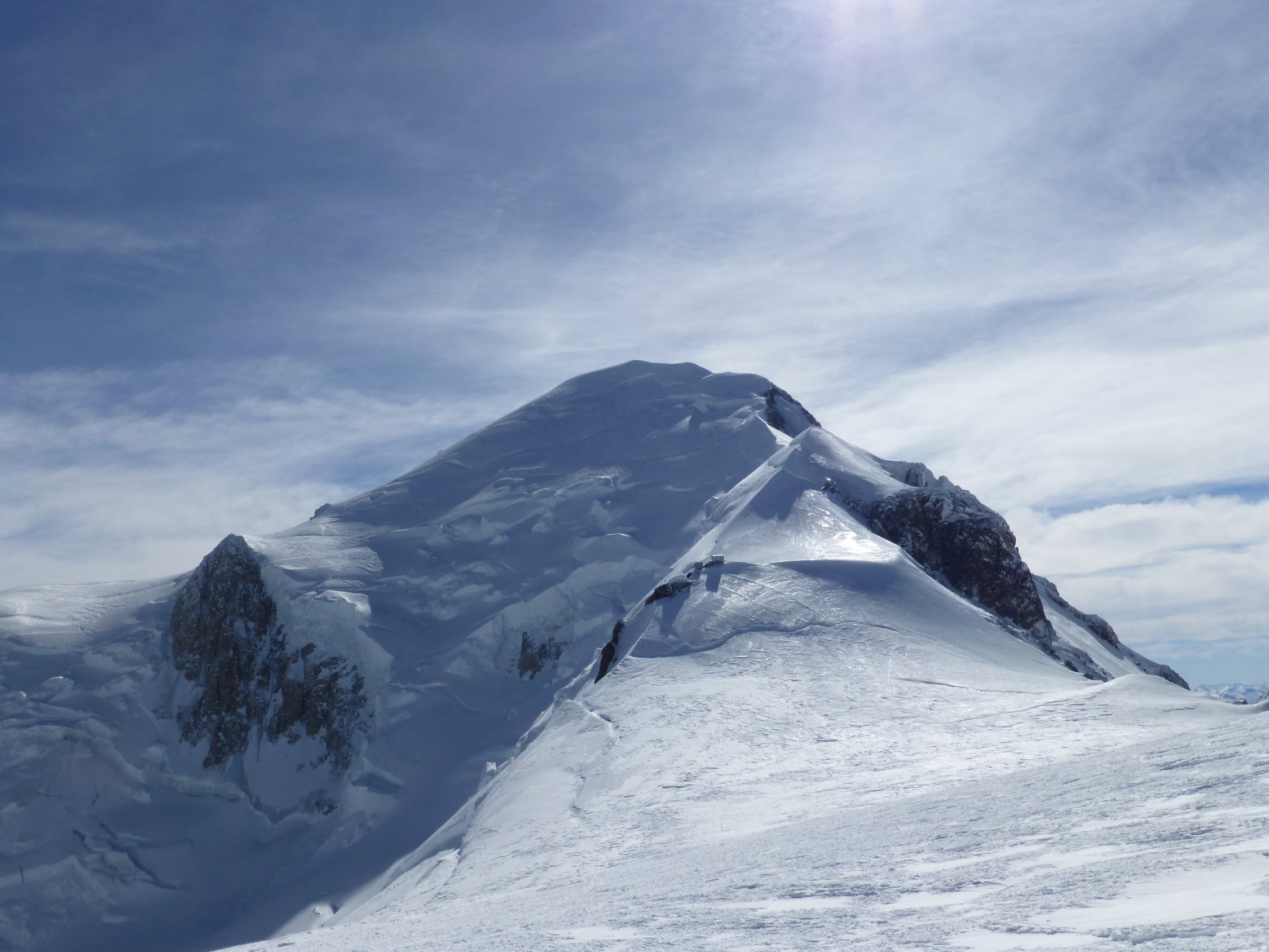 Zugang zu Nid Aigle über Bahntrasse problemlos. Ein Polen-Trupp hat den Tunneleingang kurz vor der Station freigeschaufelt. Felsrippe zur Gouter Hütte sehr gut gangbar und perfekt. Grandes Couloir tiefer Schnee und mit Ski teilweise fahrbar (Firn).Gletscher unterhalb vom Dome Gouter windgepresst. "Hüttenhang" unter Vallot Biwak freigeblasen und sehr eisig. Bossesgrat teilweise noch tief zu spuren wird aber mit der Masse von Leuten dann besser. Große Gletscherspalte am Grat im Bereich von 4600 m mit kurzen Fixseil entschärft und leicht zu begehen. Abfahrt von Tete Rousse bis Les Houches Plattenpulver und Firn. Schneelage in Chamonix heuer unterdurchschnittlich. Flanken und Grate ziemlich freigeblasen und Blankeis überall ersichtlich...