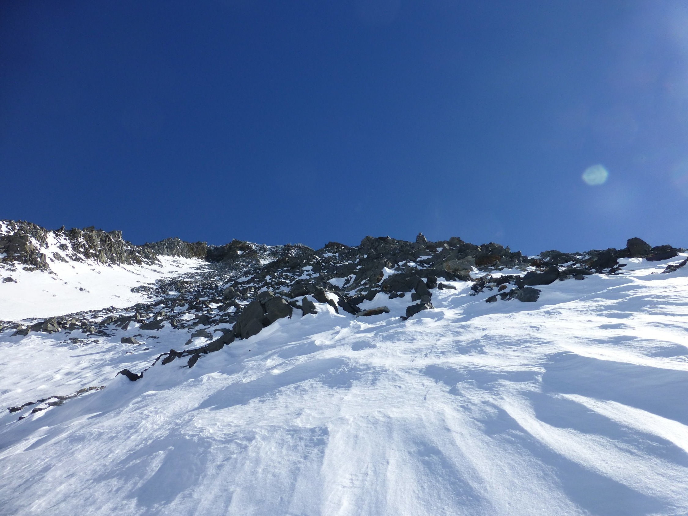 Wegen Risikominimierung (allein) hab ich diesmal den Gouter-Anstieg dem Mulets Anstieg vorgezogen (Spalten, Sercacs...) Winterraum Gouter Hütte befindet sich bei der alten Hütte. Feuchte Decken und Müll genug vorhanden.