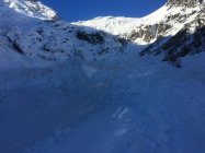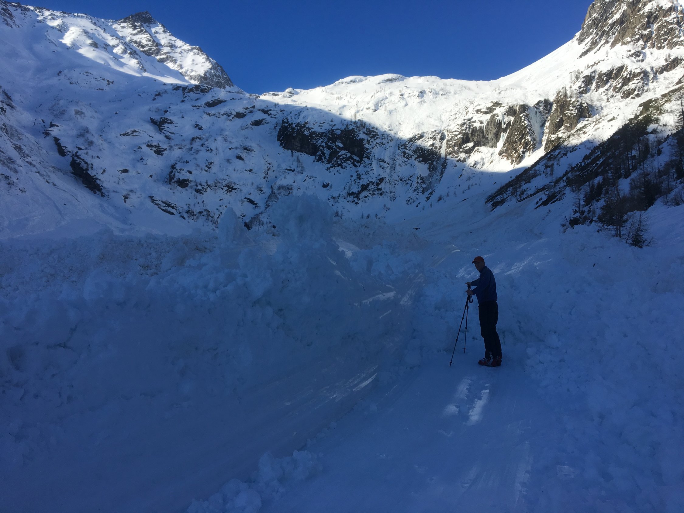 Tour abgebrochen im kartigelkessel. Eine riesige frische Nassschneelawinr hat den ganzen Kessel meterhoch aufgefüllt. Nach dem Lawinen Niedergang sind 2 skitouristen abgefahren (Spuren), aber Aufstiegsspuren haben wir nicht gesehen. Eventuell ist die Lawine gestern zwischen Auf- und Abstieg runtergekommenen. Angesichts der Wärme waren weitere Lawinen heut nicht auszuschliessen, daher Abbruch der Tour bevor sie so richtig angefangen hat.