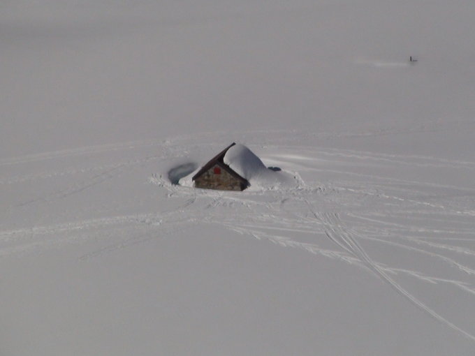 Wir haben eine angenehme Aufstiegsspur angetroffen. Die Verhältnisse sind noch gut. Ab Dampfbahn-Werkstätte Schnee vorhanden.