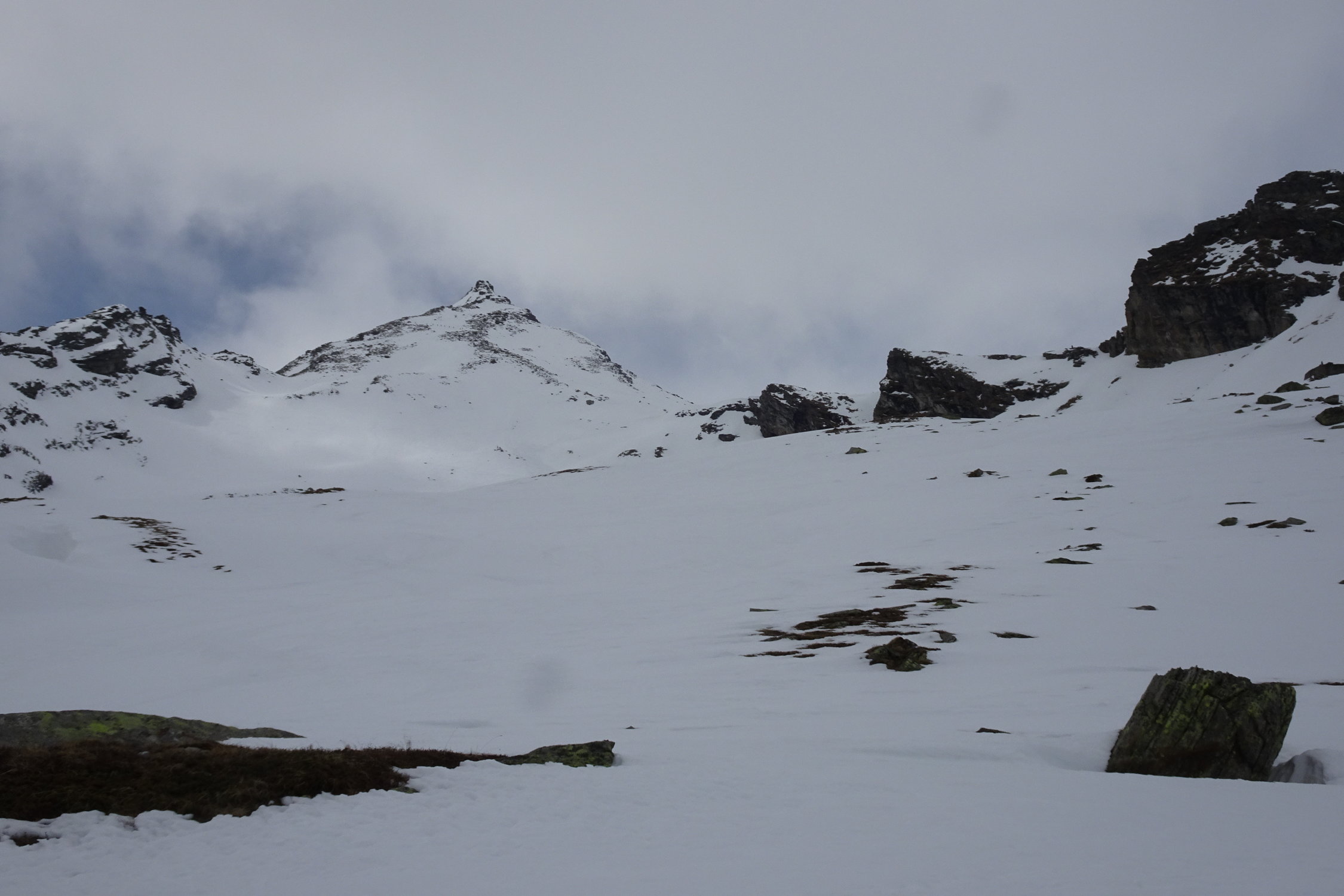 Schnee: eher wenig Schnee im Gebiet aber es reicht vollkommen aus. Aufstieg auf hartem Schnee jedoch ohne Harscheisen sehr gut machbar bis zum Skidepot.