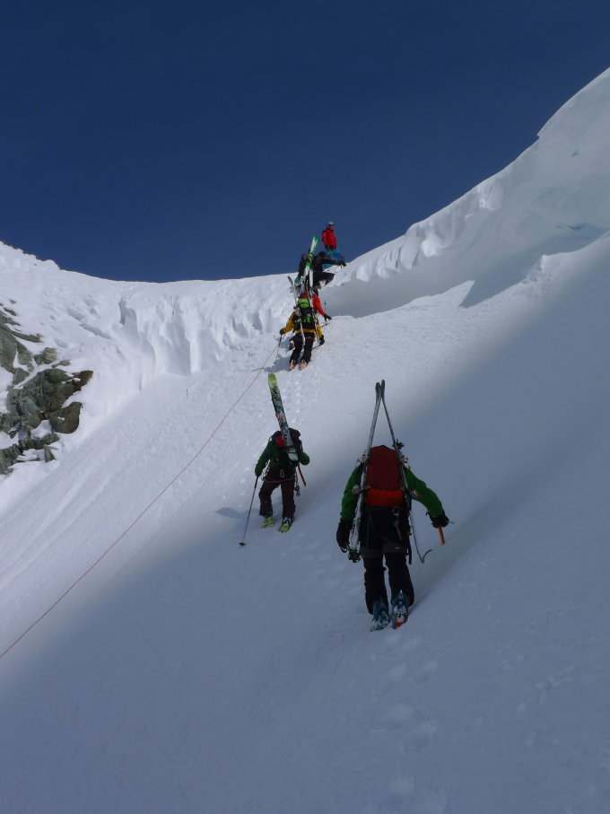 Le glacier était bien bouché. Avons pris pas mal de précautions dans la descente à cause du risque d'avalanches.