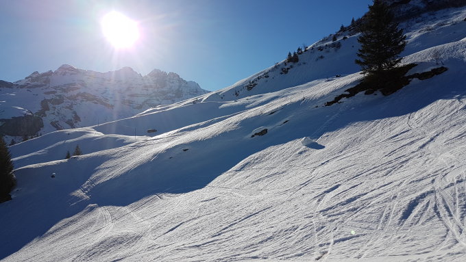 Gipfelhang bis zum Hötürlihang schöner Pulver, danach aufsulzend und mit der Zeit etwas durchbrechend.