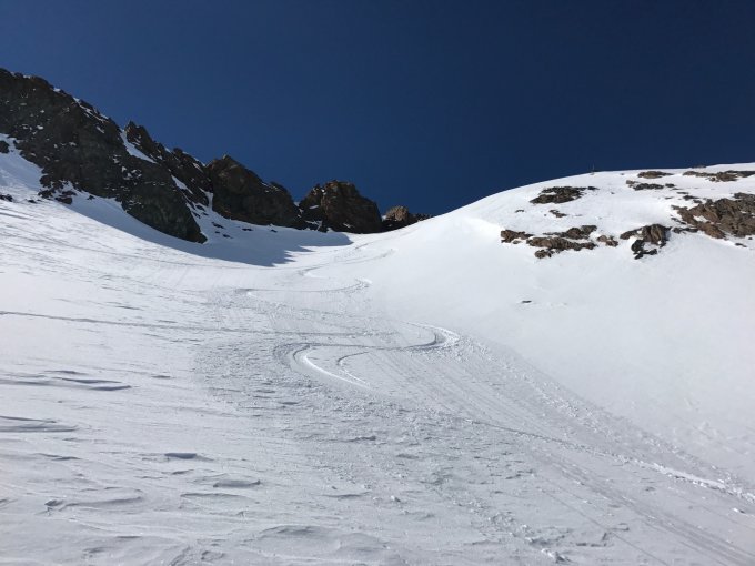 Abfahrt vom Feinsten: Pulver im oberen Teil, rasch ohne Zwischenphasen zu herrlichem Sulz mutierend.