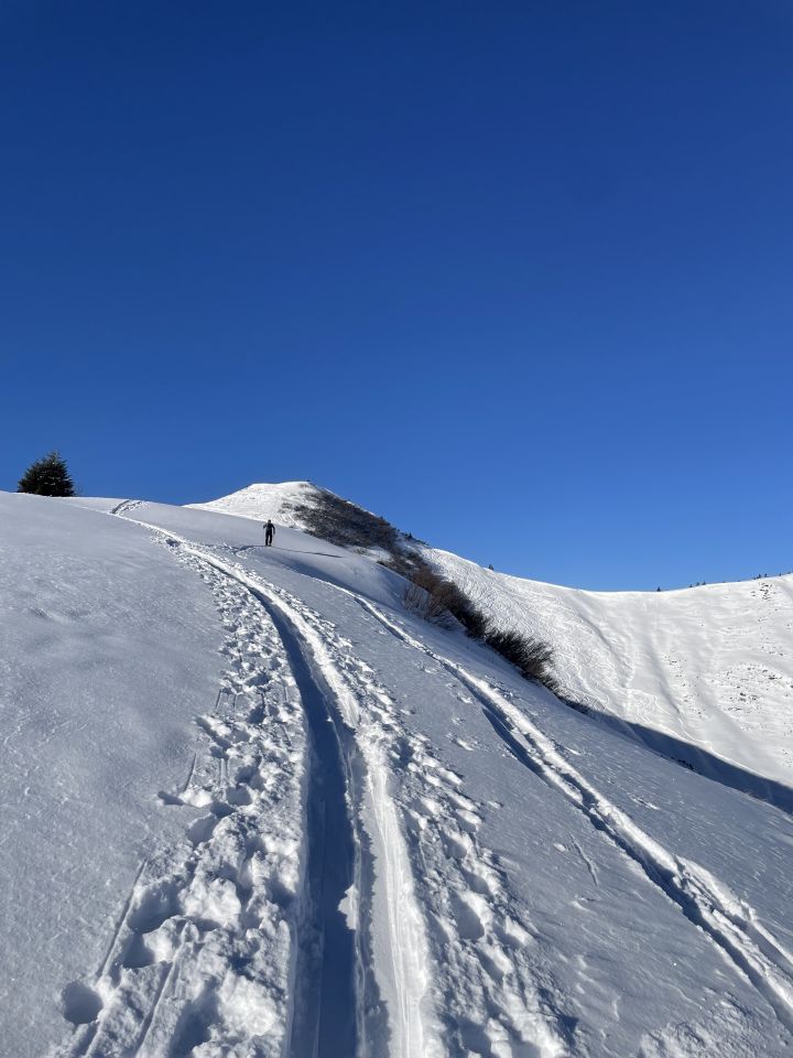Besser als gedacht. Natürlich noch wenig Schnee und es ist je nach Exposition mit Bodenkontakt zu rechnen. Wir sind Richtung Bolgental abgefahren und wiederaufgestiegen. Das war richtig gut. Ca 20cm lockerer Pulver auf tragender Harschkruste. Danach auf Gipfel und wieder zum Auto. Es war erstaunlich wenig los, obwohl Sonne satt und Feiertag.