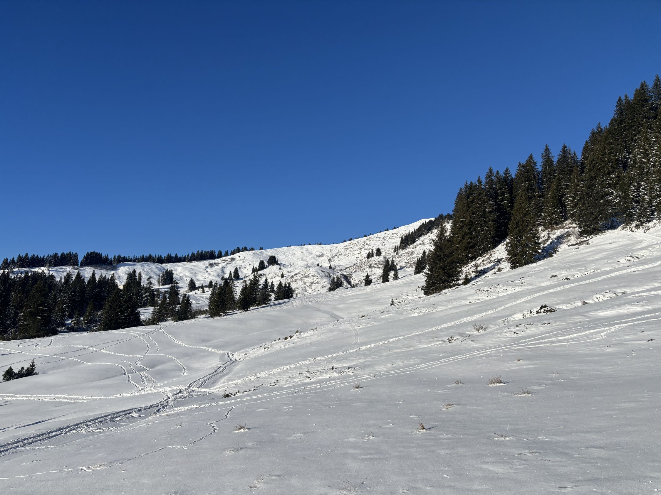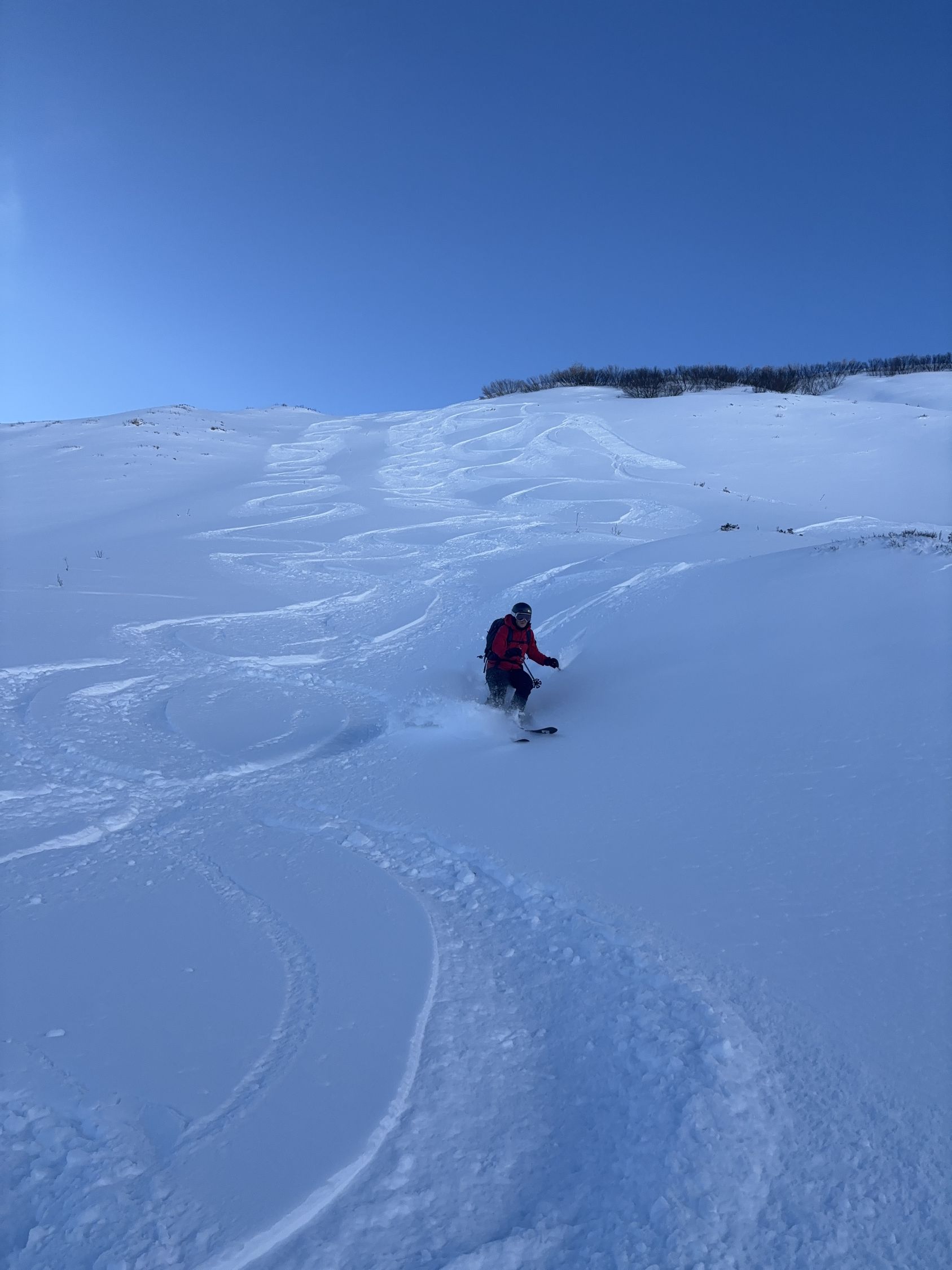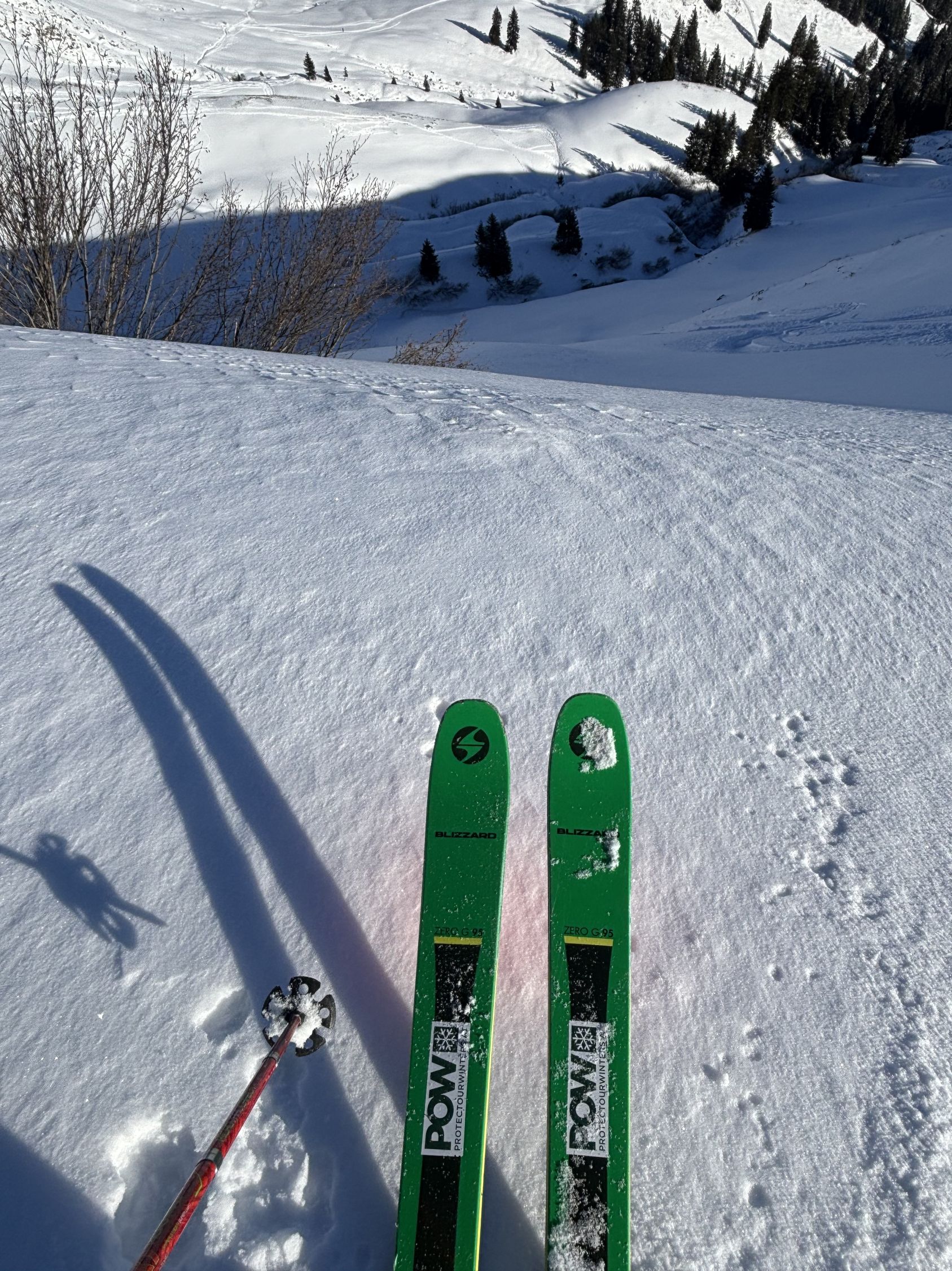 Besser als gedacht. Natürlich noch wenig Schnee und es ist je nach Exposition mit Bodenkontakt zu rechnen. Wir sind Richtung Bolgental abgefahren und wiederaufgestiegen. Das war richtig gut. Ca 20cm lockerer Pulver auf tragender Harschkruste. Danach auf Gipfel und wieder zum Auto. Es war erstaunlich wenig los, obwohl Sonne satt und Feiertag.