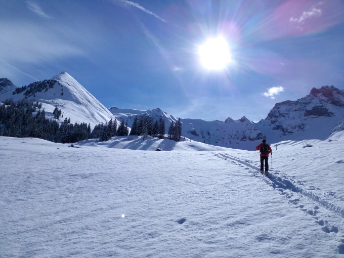 Wir hatten für diesen Tag schon die Laufschuhe bereitgestellt und einen Berglauf geplant und erst am Morgen entschieden, doch die Tourenski einzupacken, als wir die Neuschneegrenze sahen. Es hat sich gelohnt und war eine wunderbare Überraschung bei diesen unberechenbaren Wetterverhältnissen. Es lohnt sich eben doch, einfach loszugehen und sich vor Ort überraschen zu lassen!