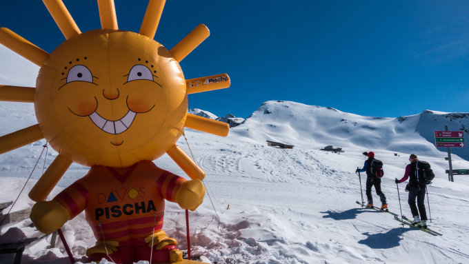Start bei der Bergstation Pischabahn um 10.30 Uhr, Abfahrt vom Gipfel kurz nach 12 Uhr. Milde Temperaturen, kurz vor dem Gipfel windig, auf dem Gipfel dann angenehm. Perfekte Verhältnisse, traumhafter Sulz auf der langen Abfahrt durchs Mattjischtälli, überall tragende Schneedecke, ausser dem letzten Hang vor der Passstrasse. Hier die Strasse überqueren und dann relativ flach zurück zum Parkplatz der Pischabahn.
