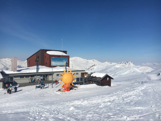 Anschl. Strassenseitewechsel und alles mit Skis bis Pischa Talstation. Schnee reicht gerade noch.