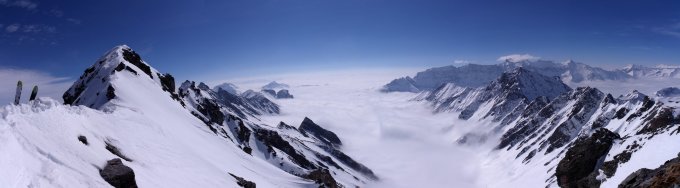 Wir haben durchgehend gute Verhältnisse angetroffen. Bis zur Wildseelücke hat es Sulzschnee, dann wechselt es zu windgepresstem Pulverschnee. Der Nebel hat den Aufstieg und vor allem die Abfahrt im Skigebiet erschwert. Wir mussten uns von Stange zu Stange tasten.