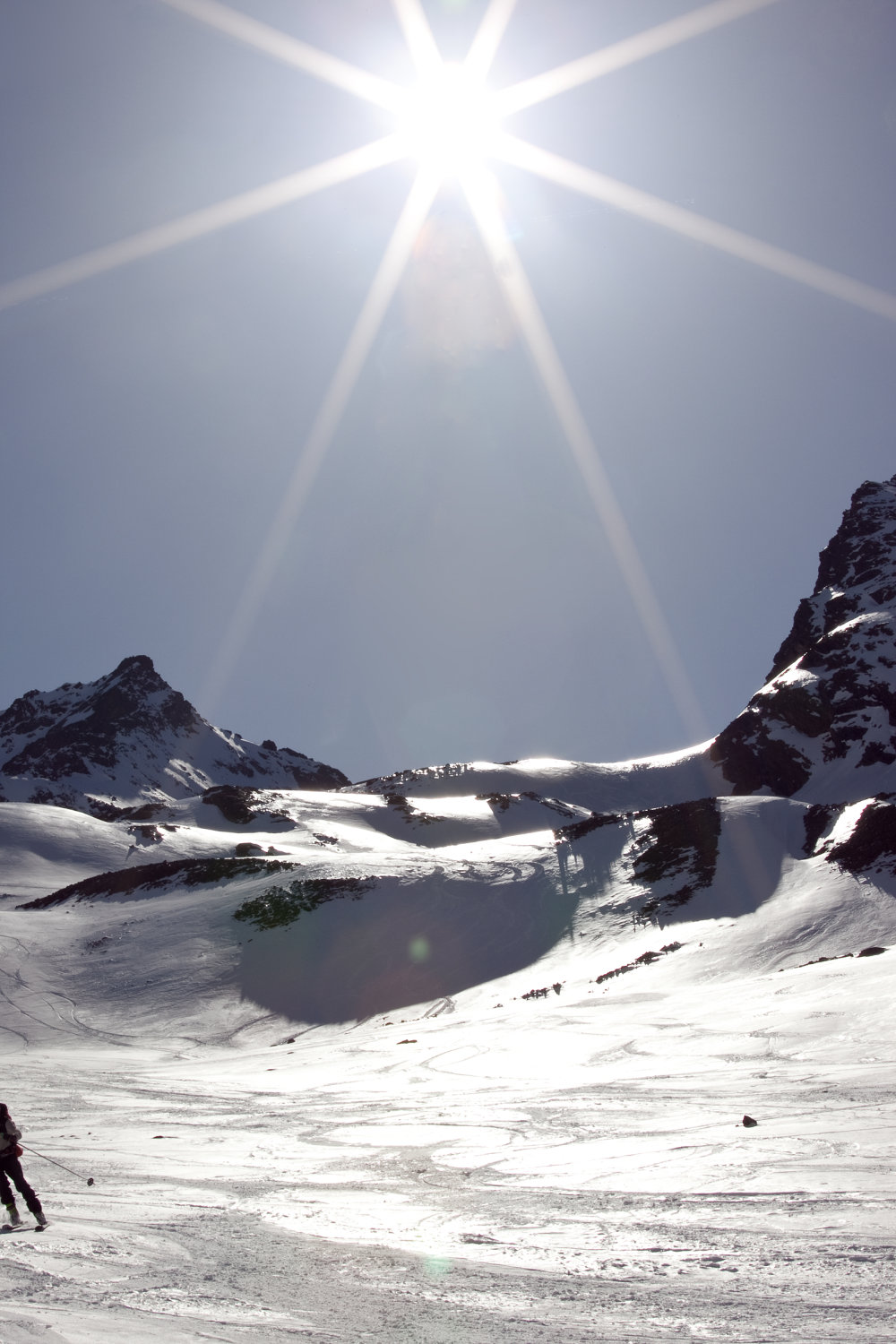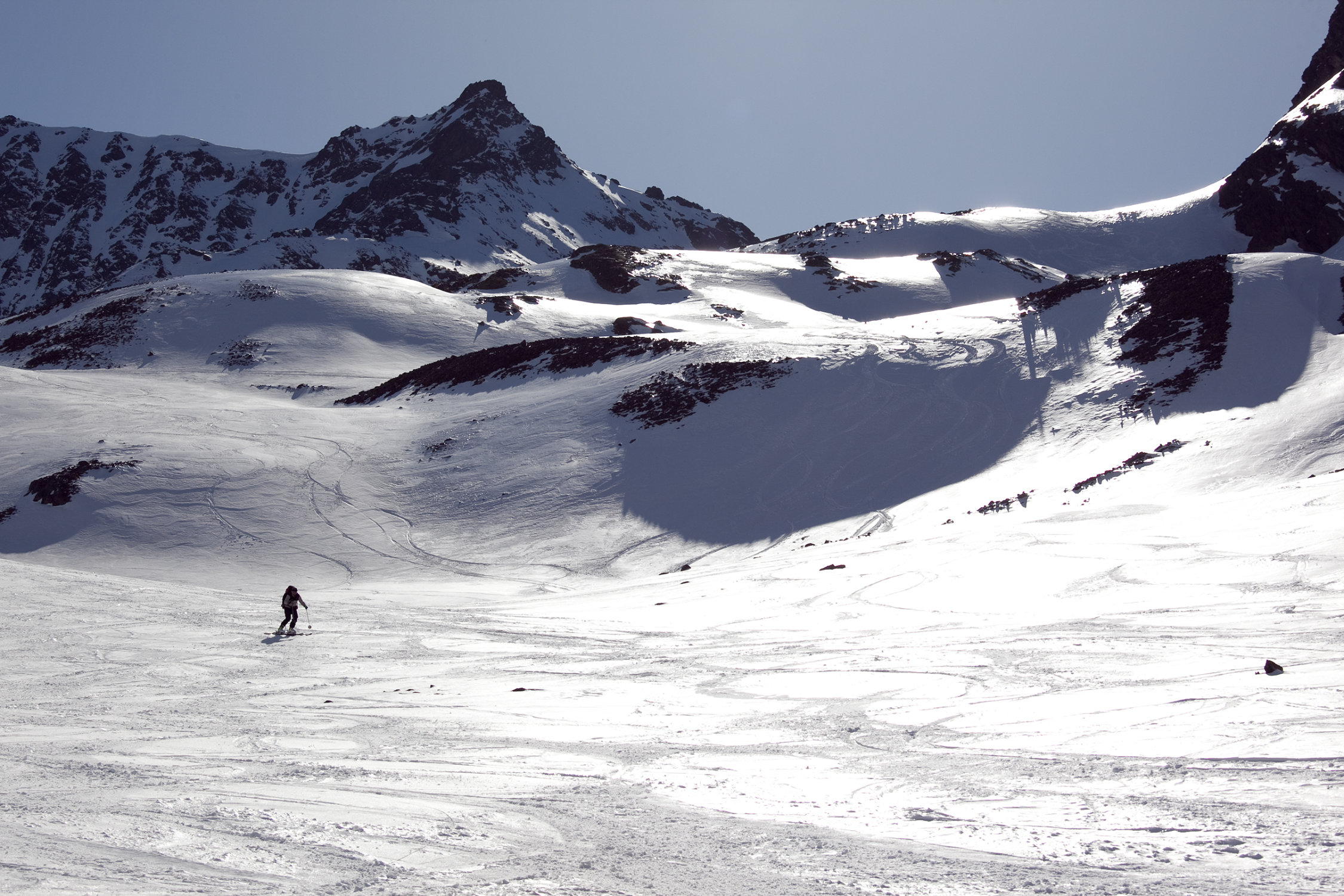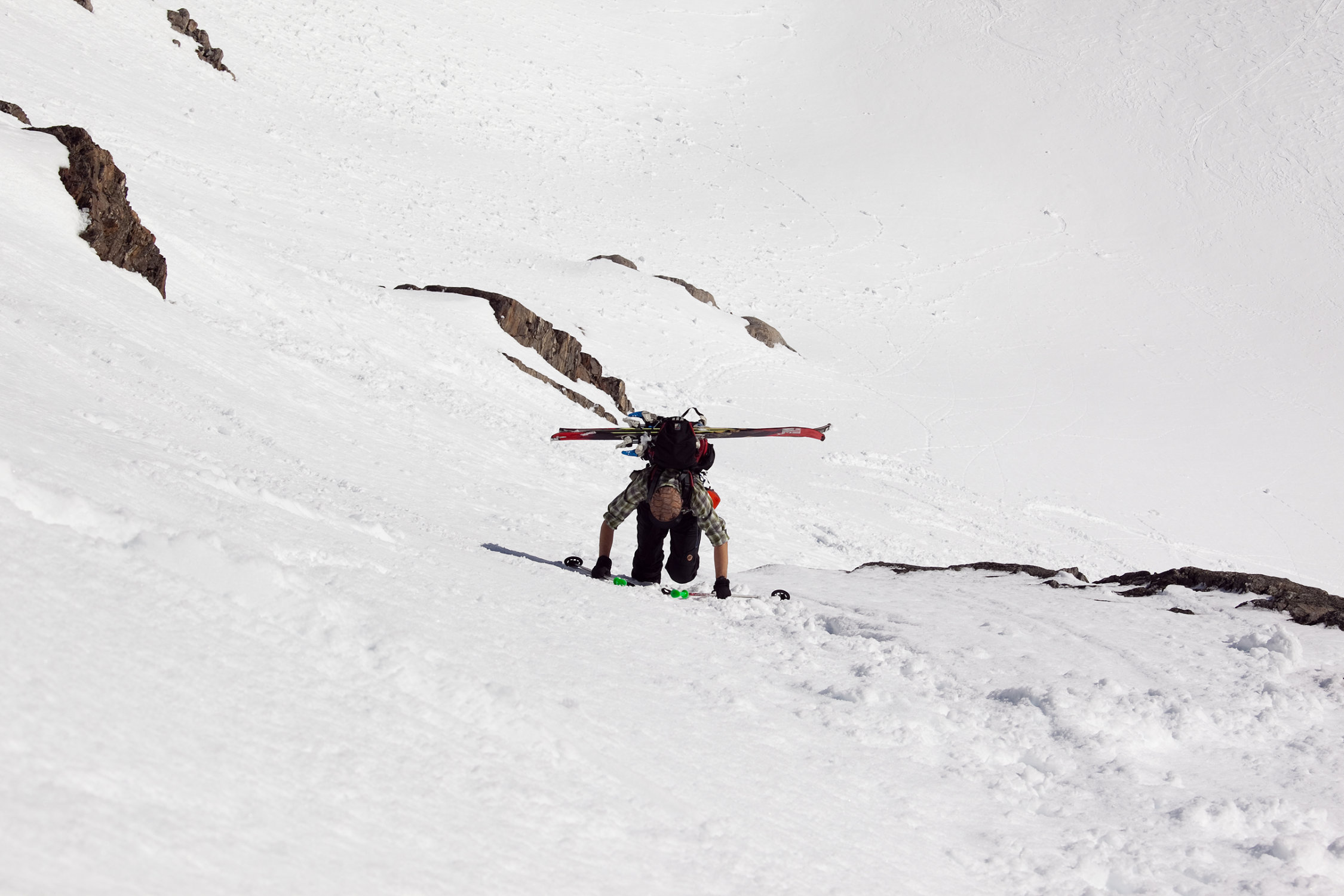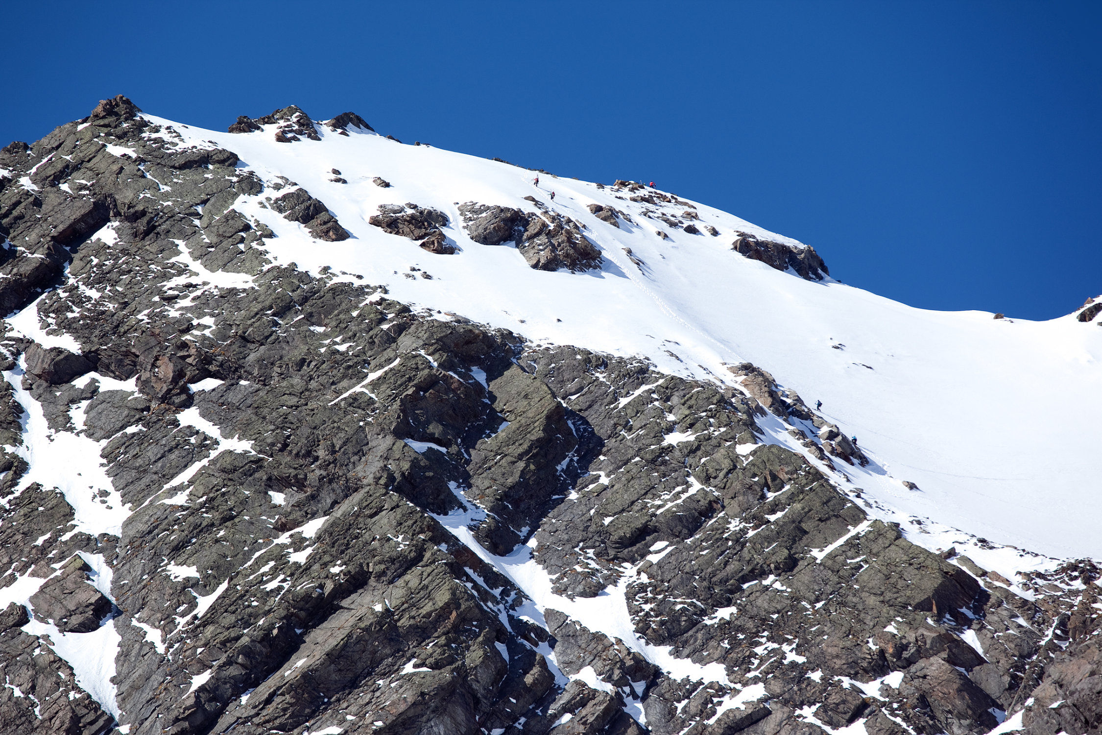 Abfahrt ab Skidepot bester Sulz, nur zum Schluss Nassschnee. Dann noch 45 min Skis tragen.