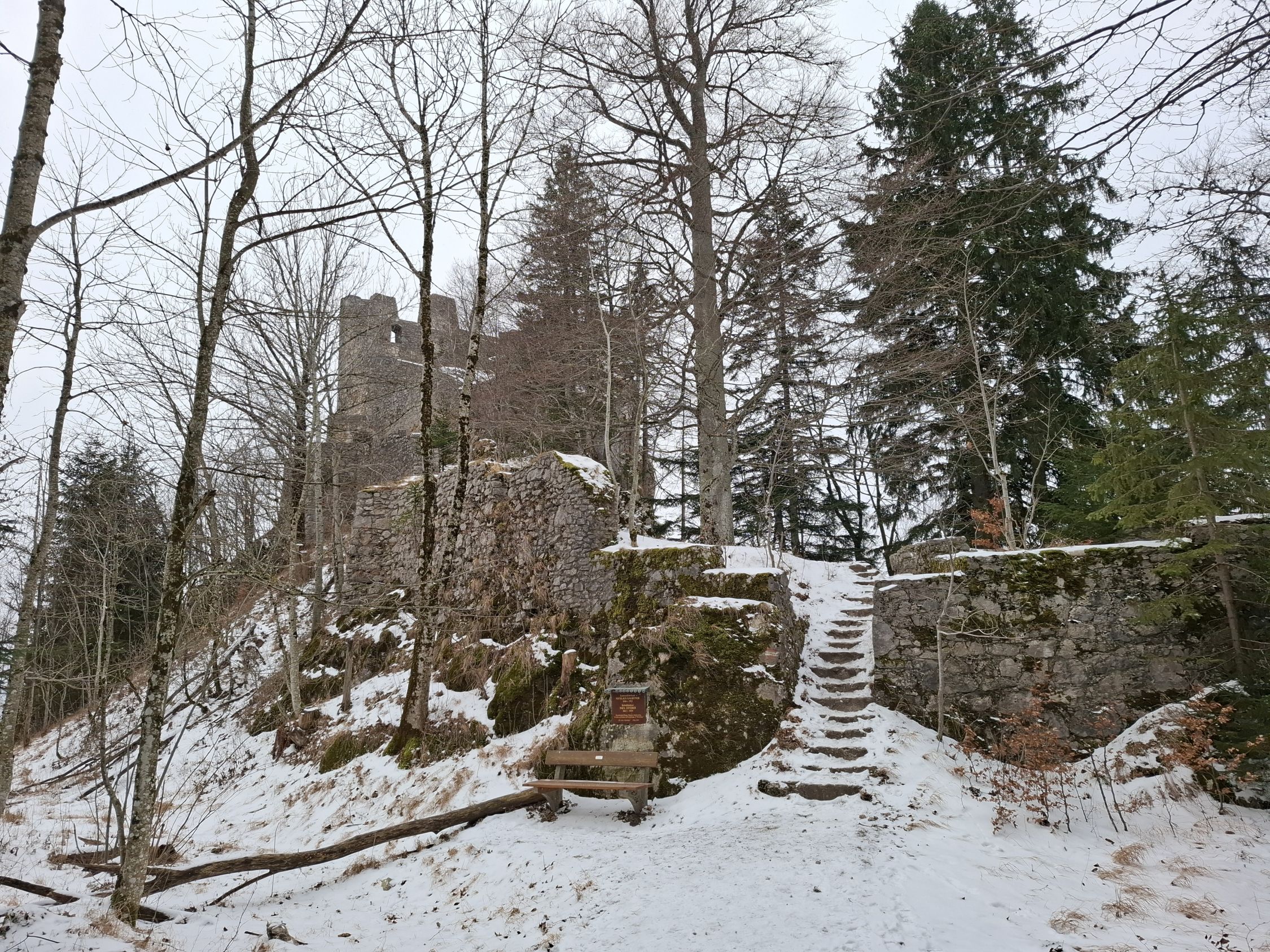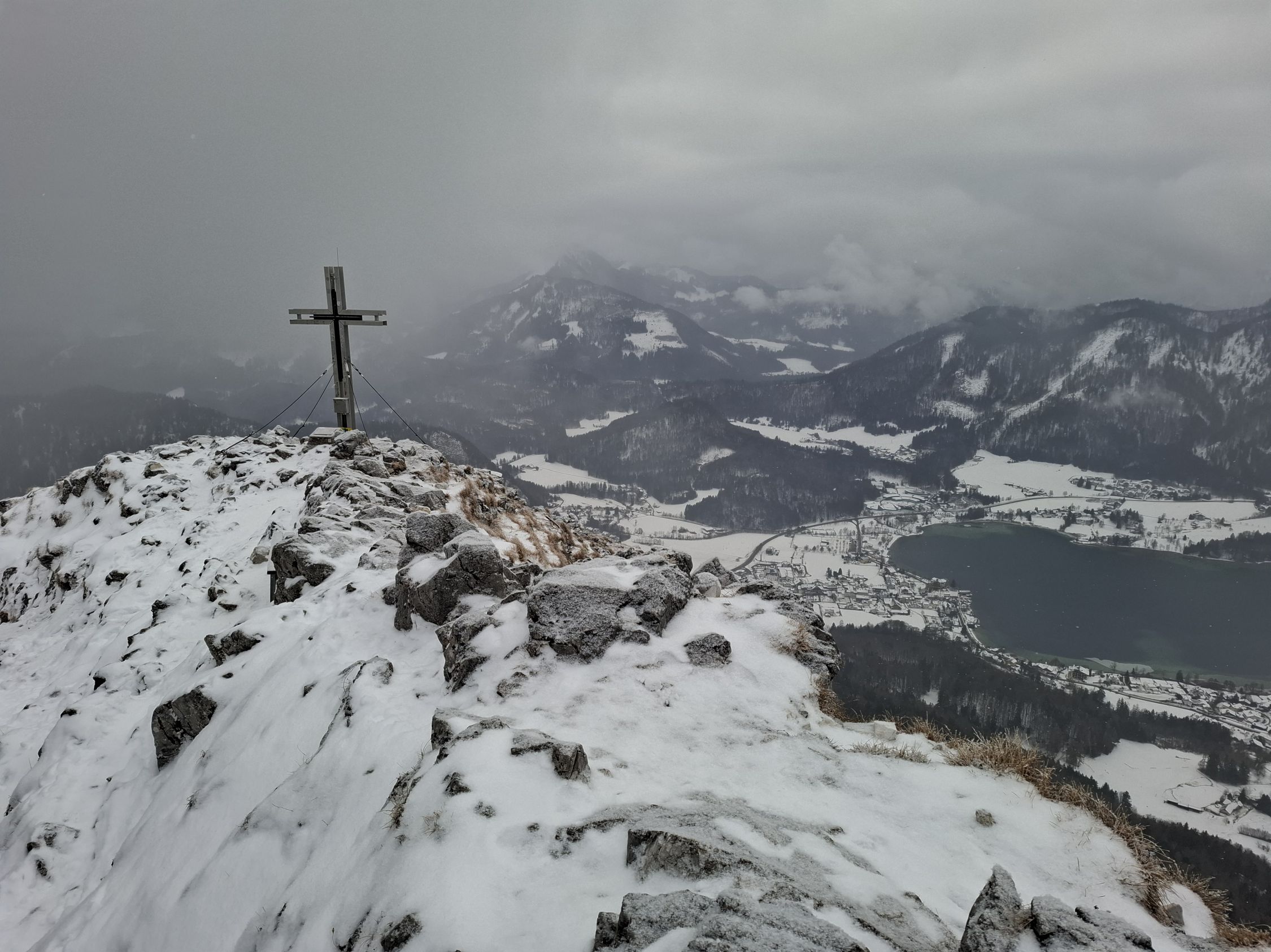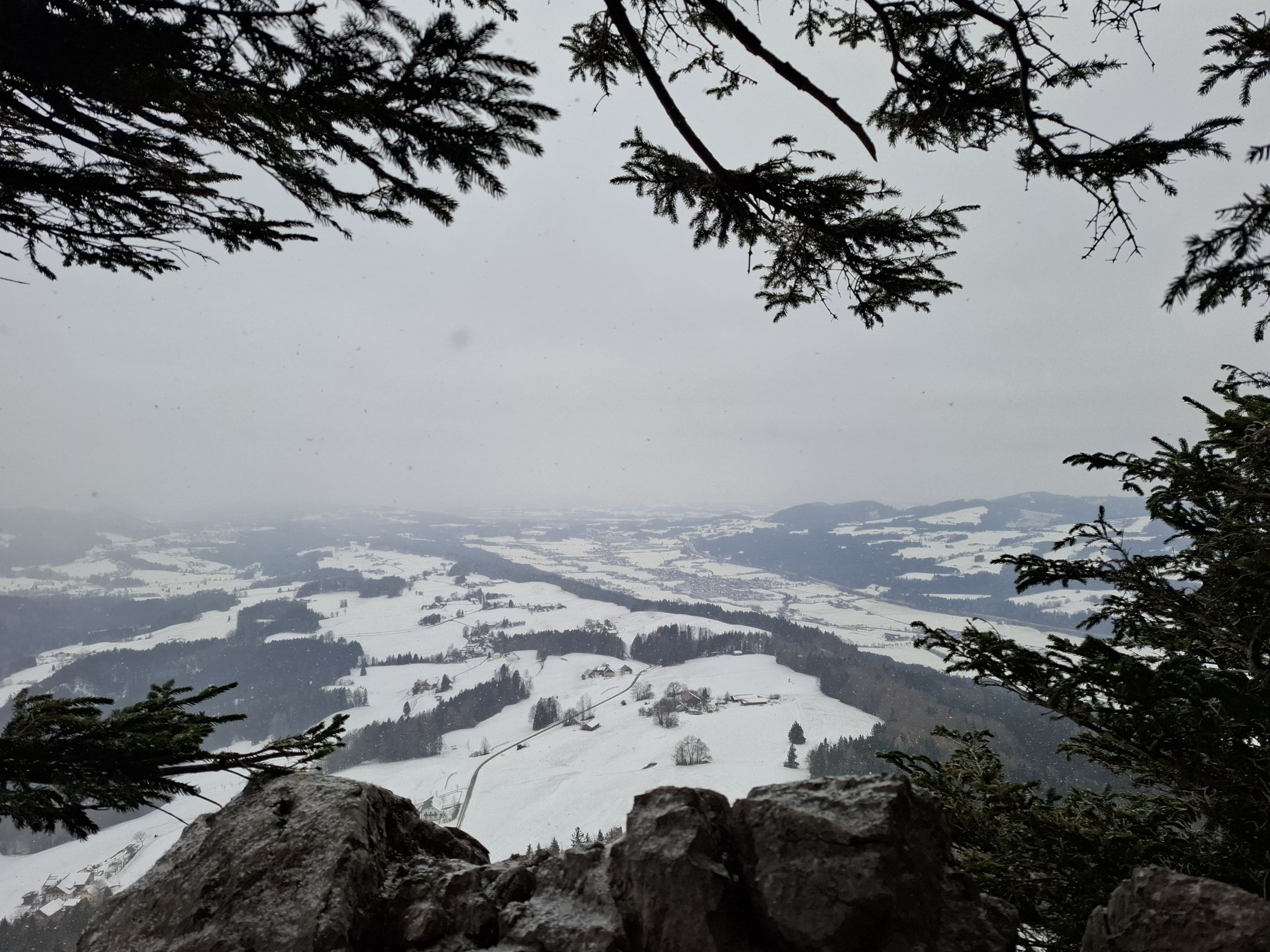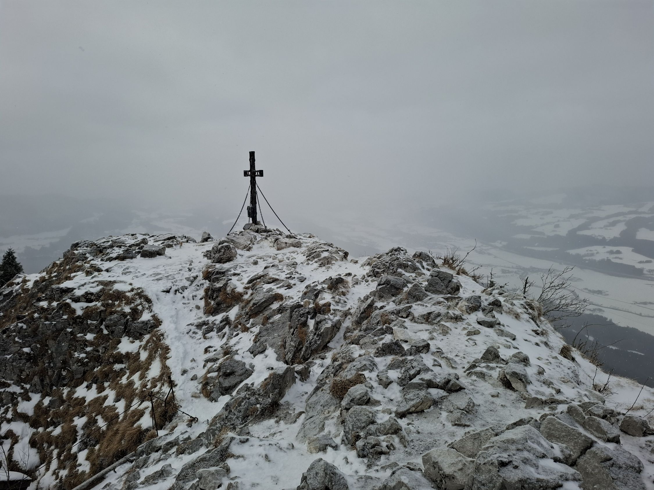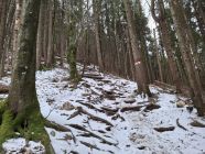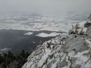 leichter Schneefall, auf der Route lag Schnee und manchmal waren Wegstellen vereist