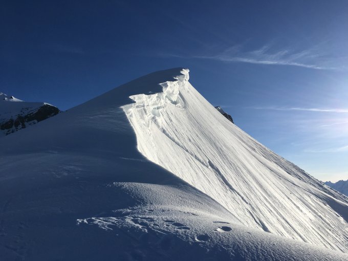 Aufstieg Zackengrat im Fels mit Steigeisen. 2h später wurde der Hang mit Skis im Aufstieg gespurt. Ansonsten super Verhältnisse- Abfahrt Top.