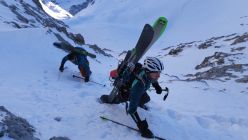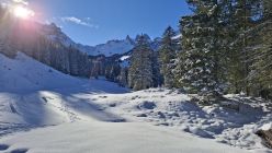 Von Latschau aus über die Rodelstrecke (durchgehende Schneepiste) zur Lindauerhütte. Über den Sporentobel, bis Höhe 2650m. 50Hm Skitragen mit einer guten Stapfspur zum Joch und dann zum Gipel (Windgepresst - Harscheisen zu empfehlen) Abfahrt gleich wie Aufstieg mit 20cm Pulver auf ruppiger Unterlage und noch wenigen Abfahrtsspuren.
