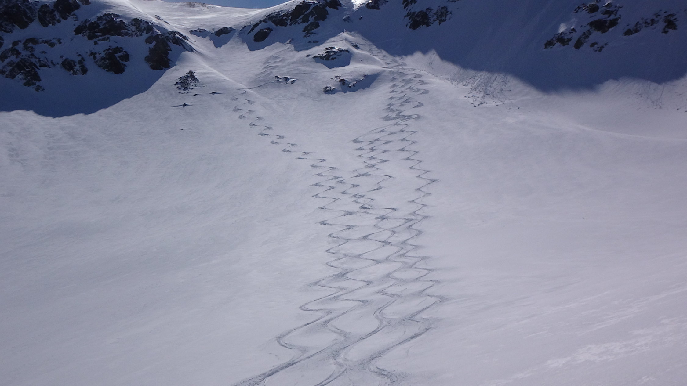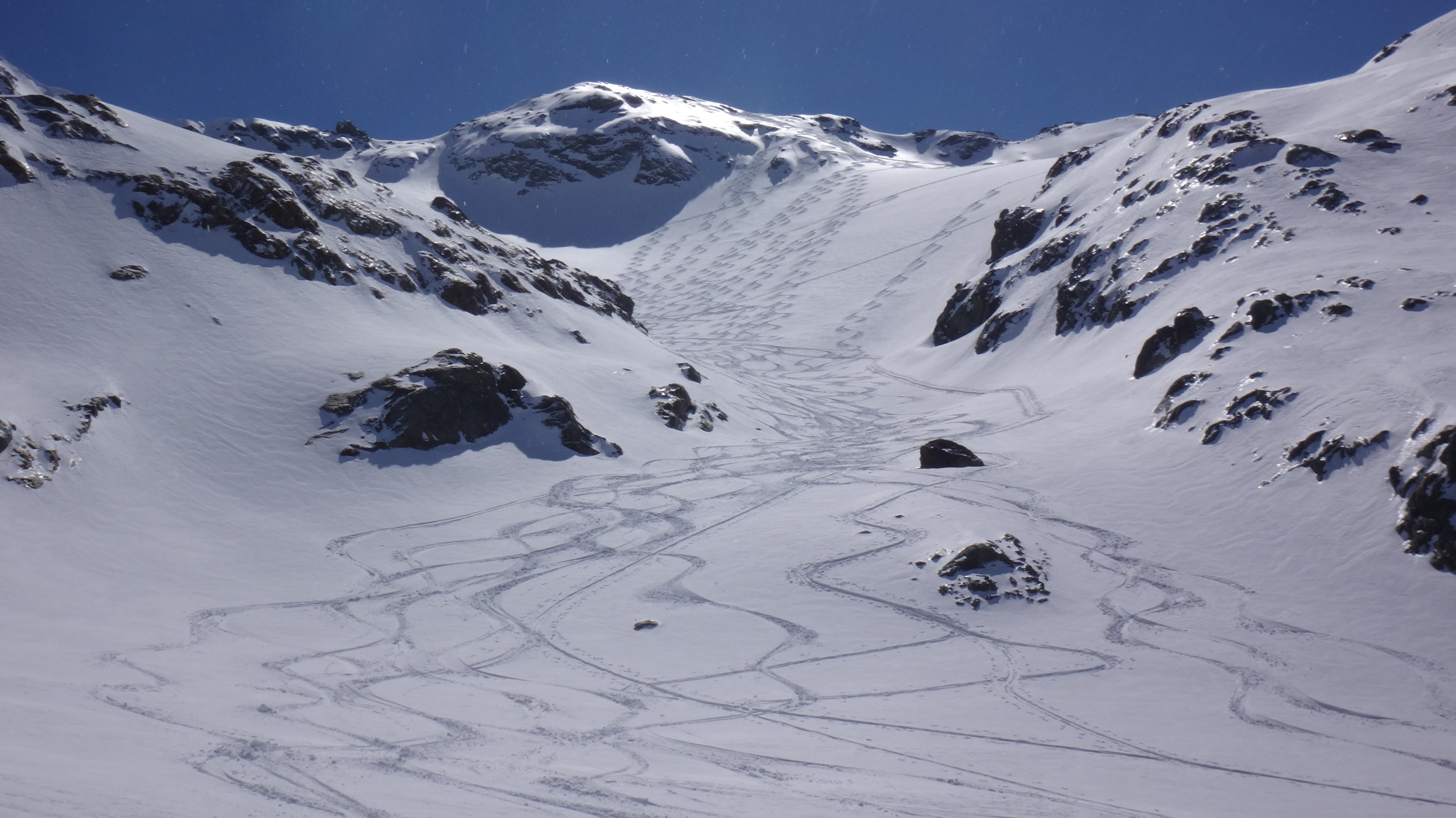 mit Ausnahme einigen Stein unter dem Gipfel, top pulverschnee, unter 2400 etwa ausgezeichnetem Frühlingsschnee