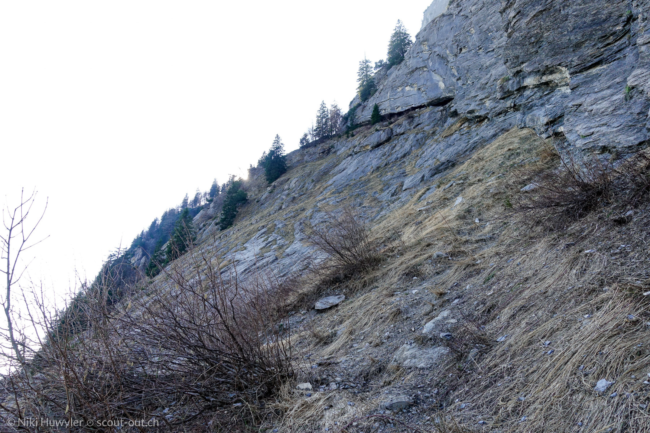 Follaplatte ist Schneefrei. Oberhalb Follawald einzelne Schneefelder. Bis zum Gonzen Gipfel geschlossene Schneedecke. Die Seile bei der Follaplatte sind im guten Zustand. Viele loses Gestein vom Winter vorhanden.