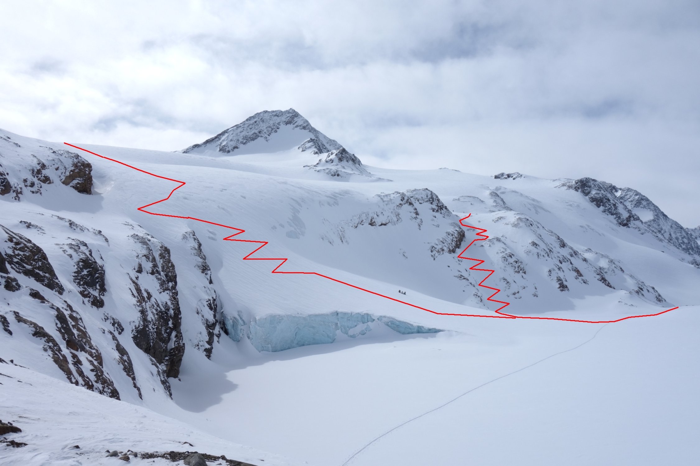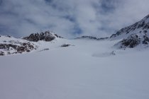 Beim Aufstieg in Richtung Fineilspitze nicht zu steil aufsteigen, den Felsriegel eher recht weit umgehen, da einige Stellen viel Blankeis aufweisen und recht heikel im Auf- und Abstieg sein können.