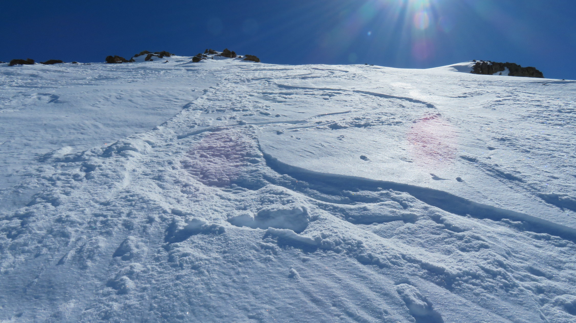 Top Verhältnisse Oberste 400Hm kleine Pulverauflage ca.5cm dann bis 2400m hinunter Hartschnee griffig.