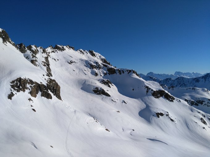 Auf der Passstrasse wird es ein paar Meter Tragestrecke geben. Ansonsten top Frühlingsverhältnisse.
