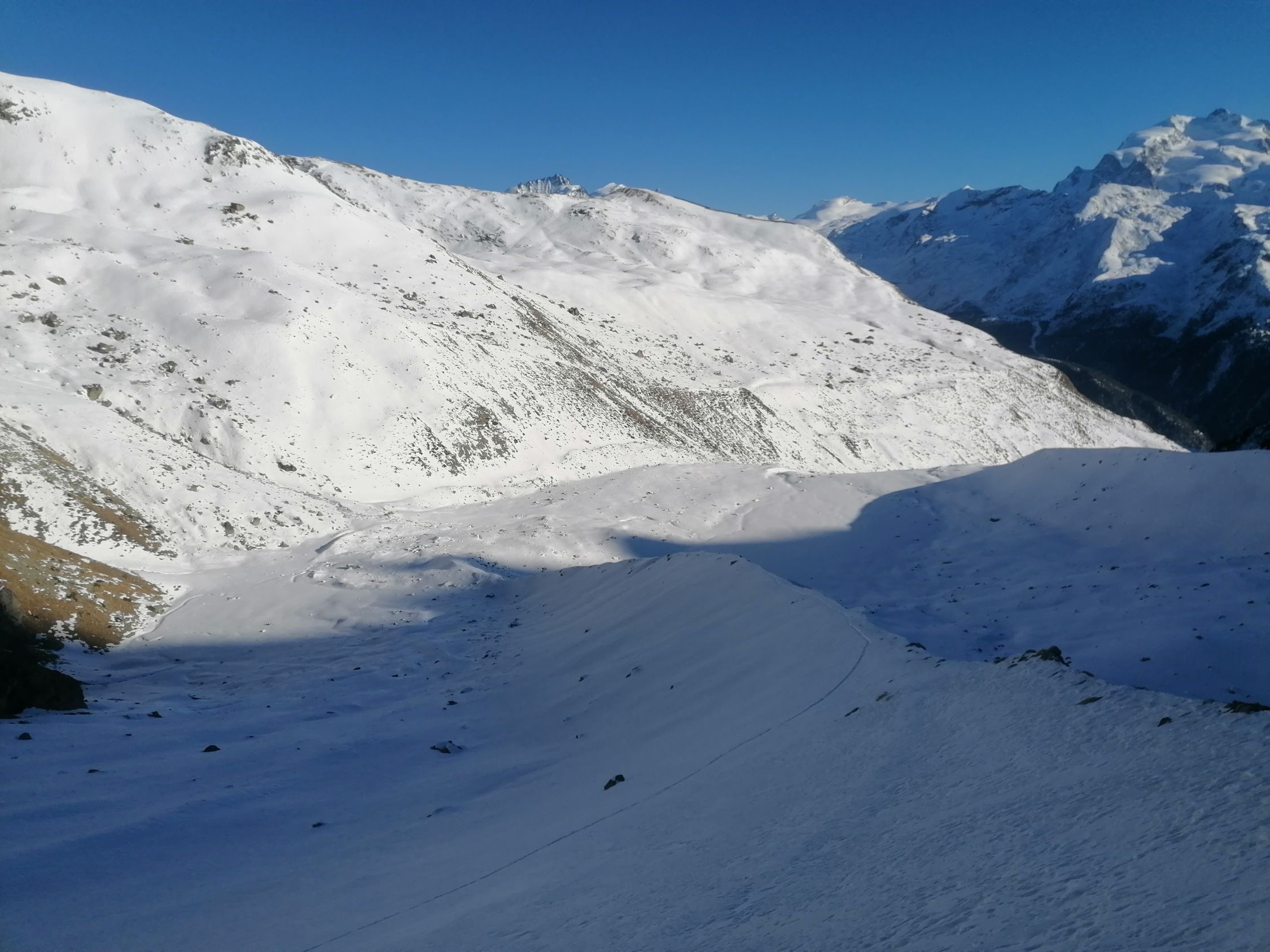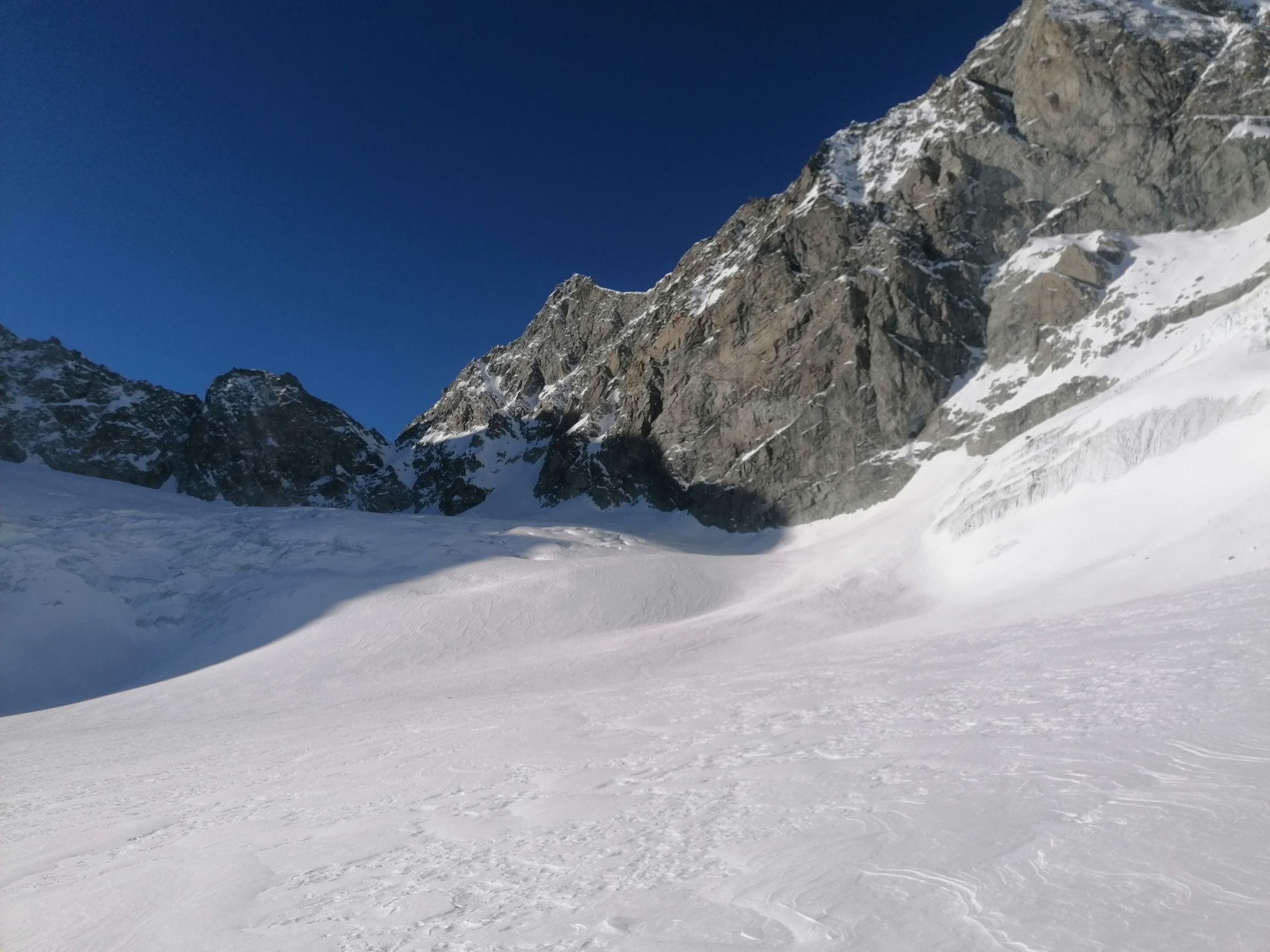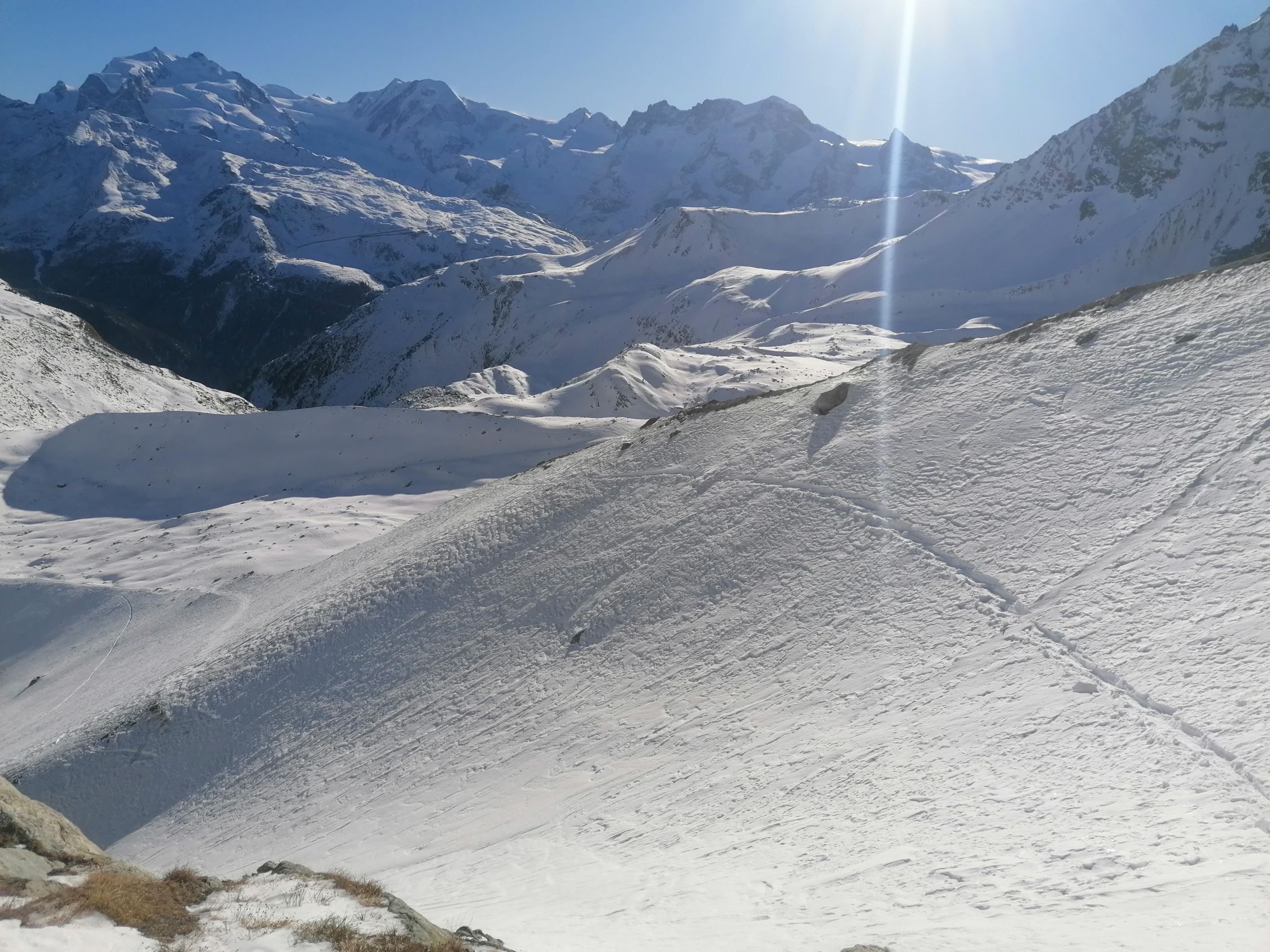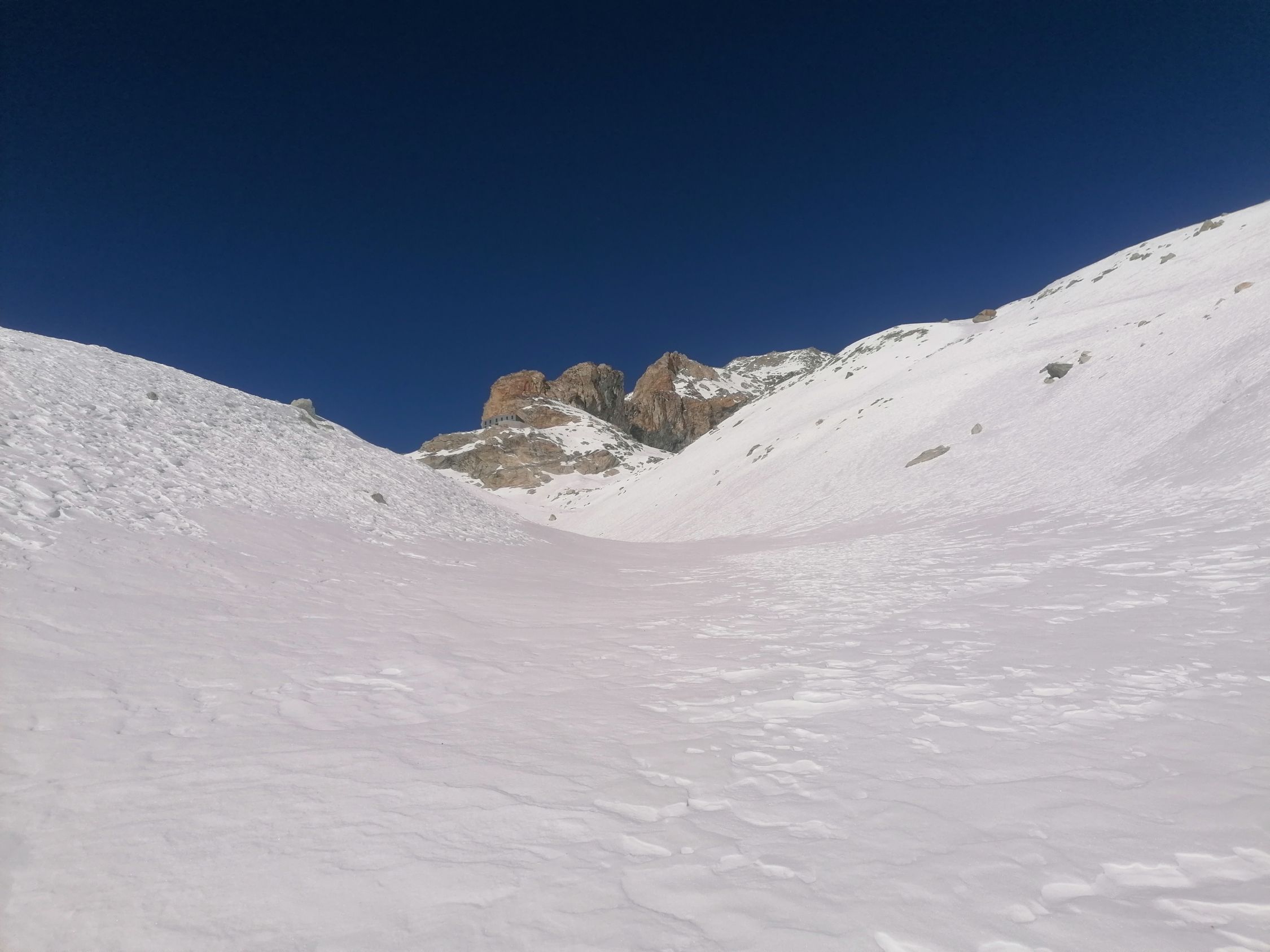Ausgezeichnet. D.h. Diese Einstufung bezieht sich auf den Umkehrpunkt bis auf 3400m. Bis hierher tragender Firnschnee, und wunderbarer bis 30cm tiefer Pulverschnee.