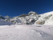 Grossartige und seltene begangene Skitour hoch über Zermatt. Von der Alpe Trift 2337m gehts weiter in den Vieliboden, P.2591m, auf die alte Randmoräne vom Triftgletscher hinauf. Weiter links an der Rothornhütte vorbei auf den Triftgletscher. Wir sind bis 3400m gestiegen. Mehrere Wummgeräusche, d.h. gebundene Schneeschichten bereits im flacheren Teil vom Triftgletscher, liessen uns auf die letzten 200m verzichten. Es war zu heikel, die obersten bis 40 Grad steilen Hänge zu betreten. Eine halbe Stunde vor dem Skidepot sind wir umgekehrt.