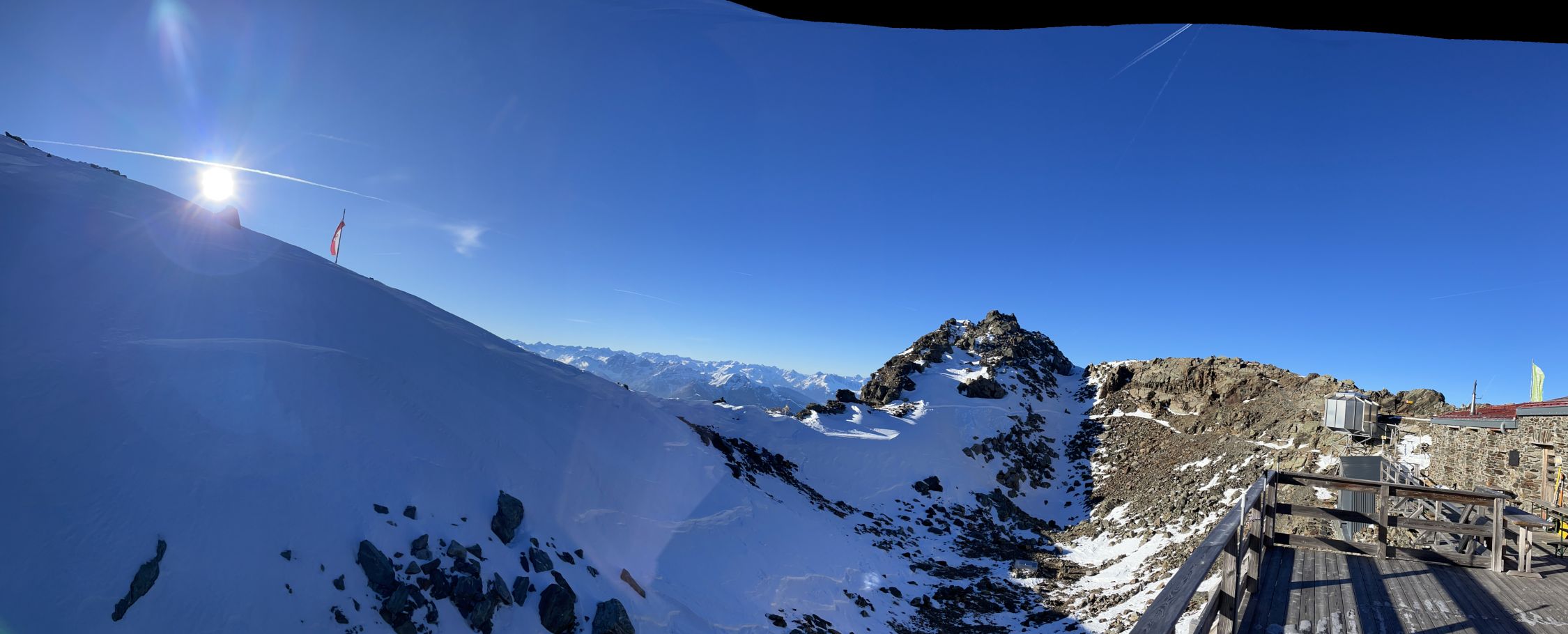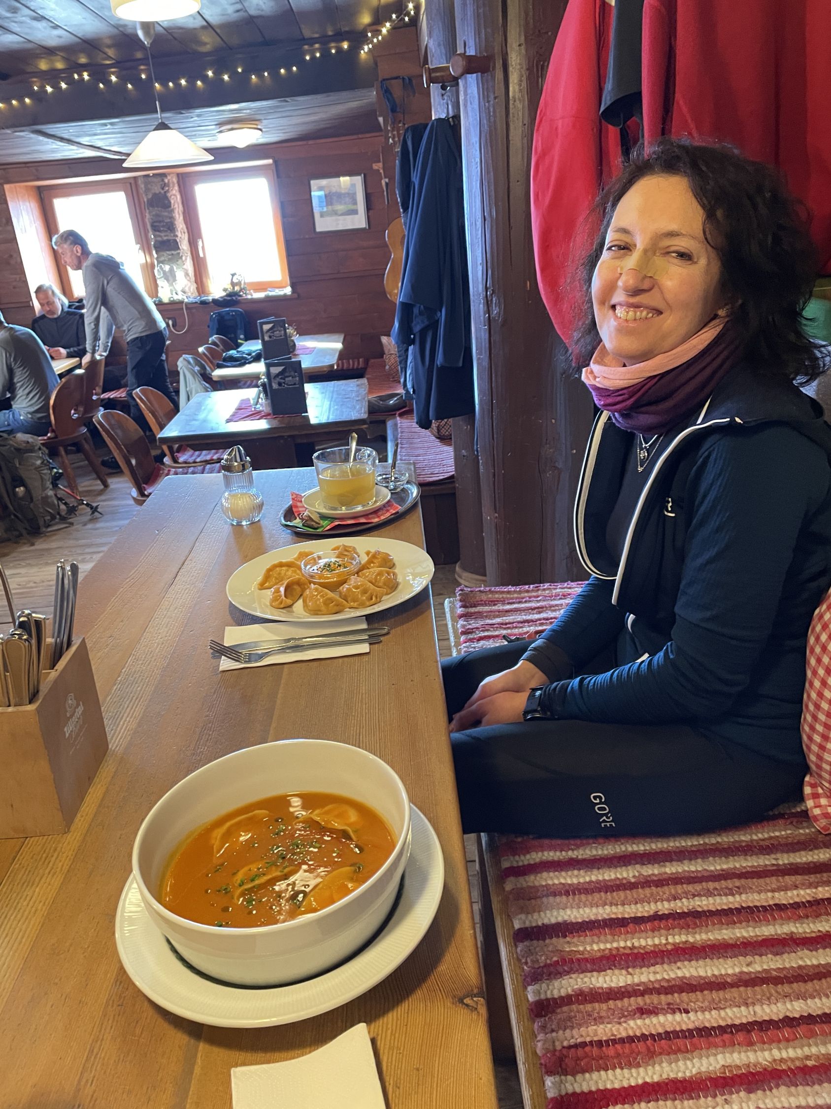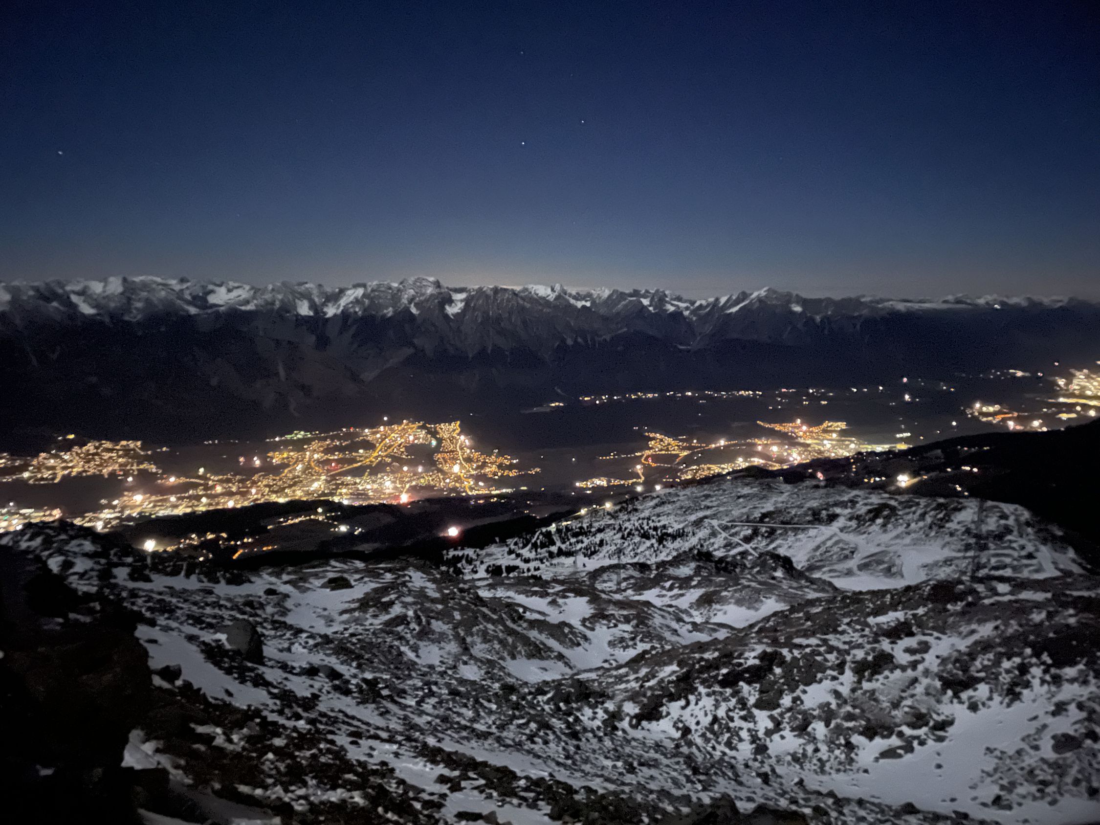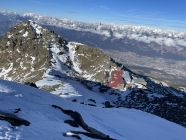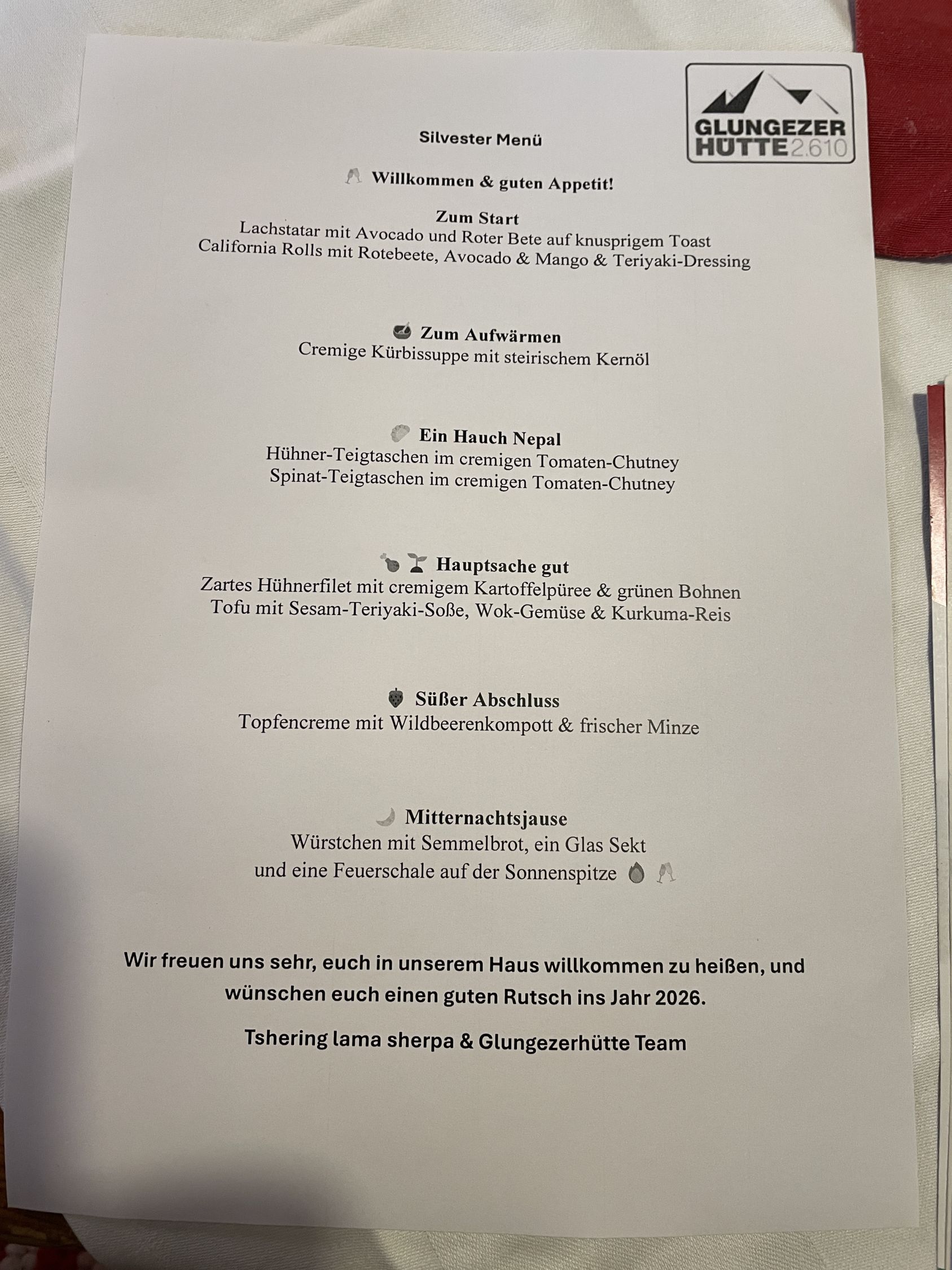 Das in Nepal gebürtige Personal leistet auf der Glungezerhütte eine ausgezeichnete Arbeit. Interessant, wie das Team von Tshering Lama Sherpa dort oben freundlich unter beengten Bedingungen zurechtkommt. Wir blieben hier über den Jahreswechsel. Mit insgesamt 55 Gästen. Einige übernachteten im Lager unter der Terrasse und in der Biwak-Schachtel. Das 5-Gänge-Menü am Abend war sehr gut. Ideenreich das Feuer auf der Sonnen-Spitze mit Sektempfang.