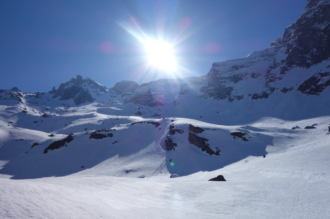Noch genügend Schnee und bleibt in den N-Expositionen noch länger gut. Die jetzt schon etwas heiklen Steilpassagen werden aber nicht einfacher.