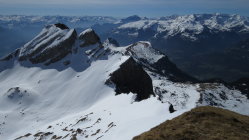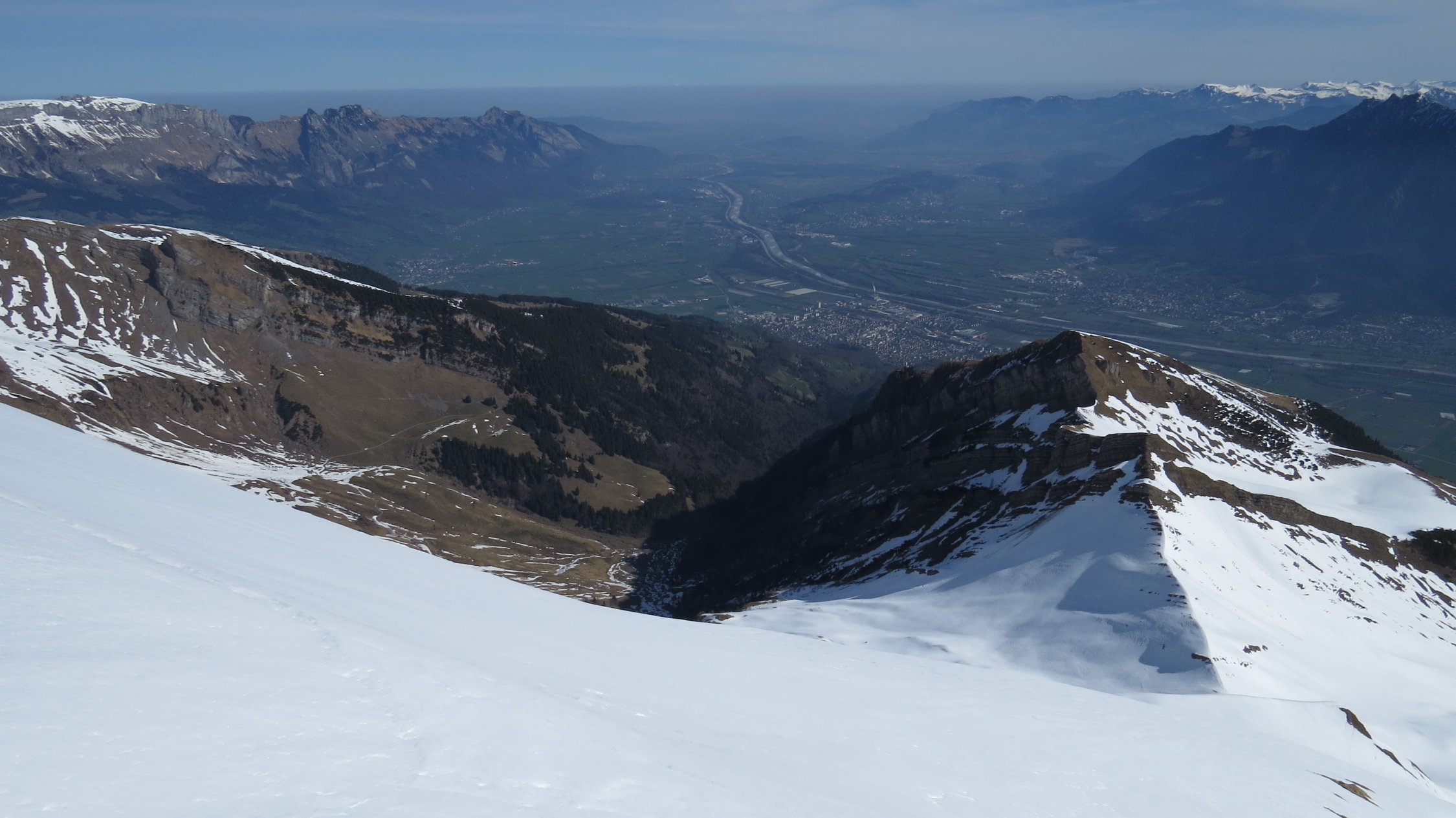 Wenn man nicht der schnellste Aufsteiger ist, seinen Helm den Steilhang ins Aferisloch wirft und dieser erst auf ca. 1980 m anhält und sich dann in der Freude über einen fast einsamen Tag am aussichtsreichen Alvier nicht vom Gipfel trennen kann, darf man sich nicht wundern, wenn der Schnee unten faul ist ;).