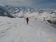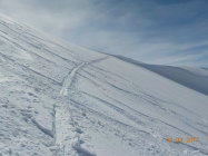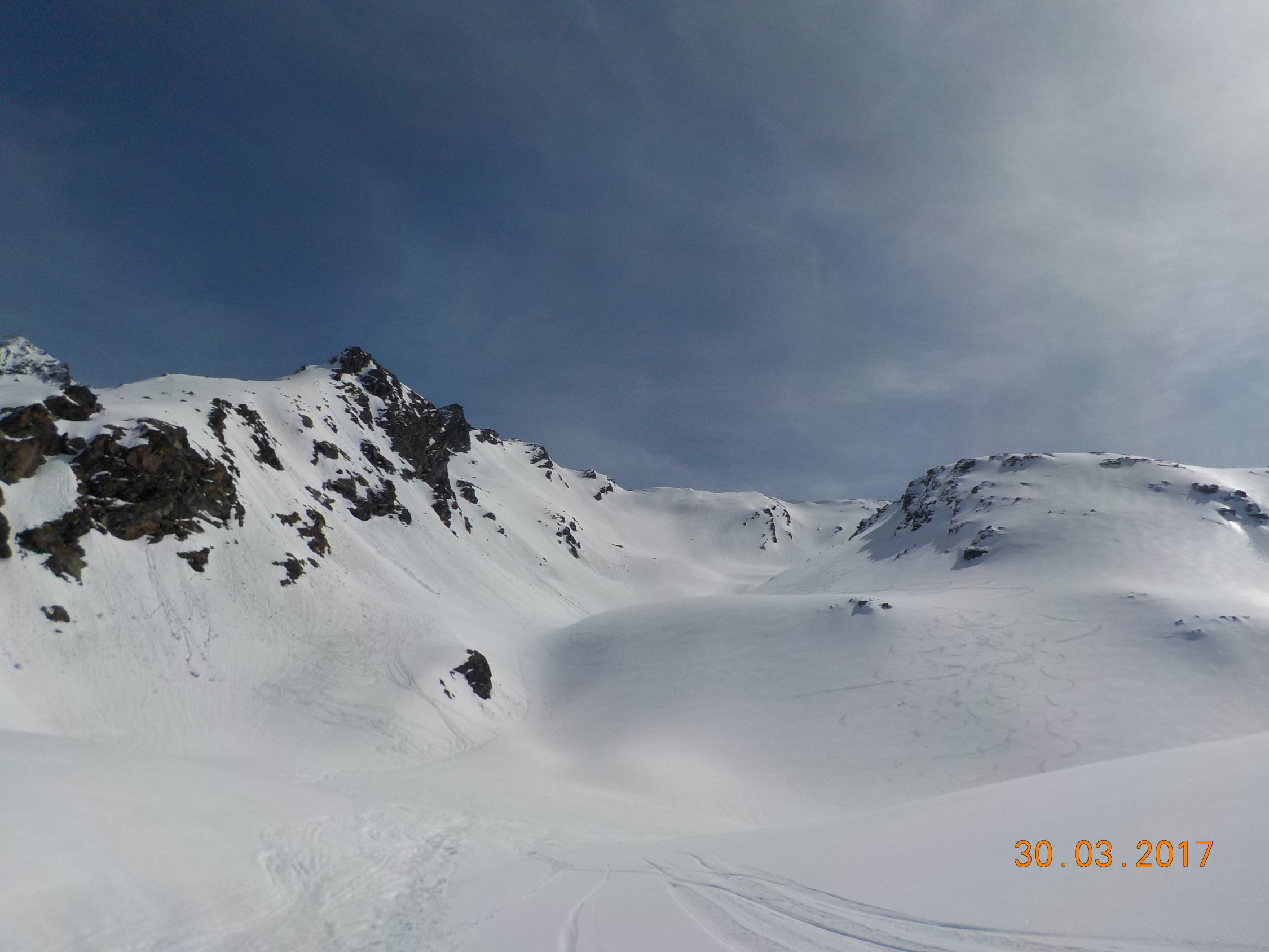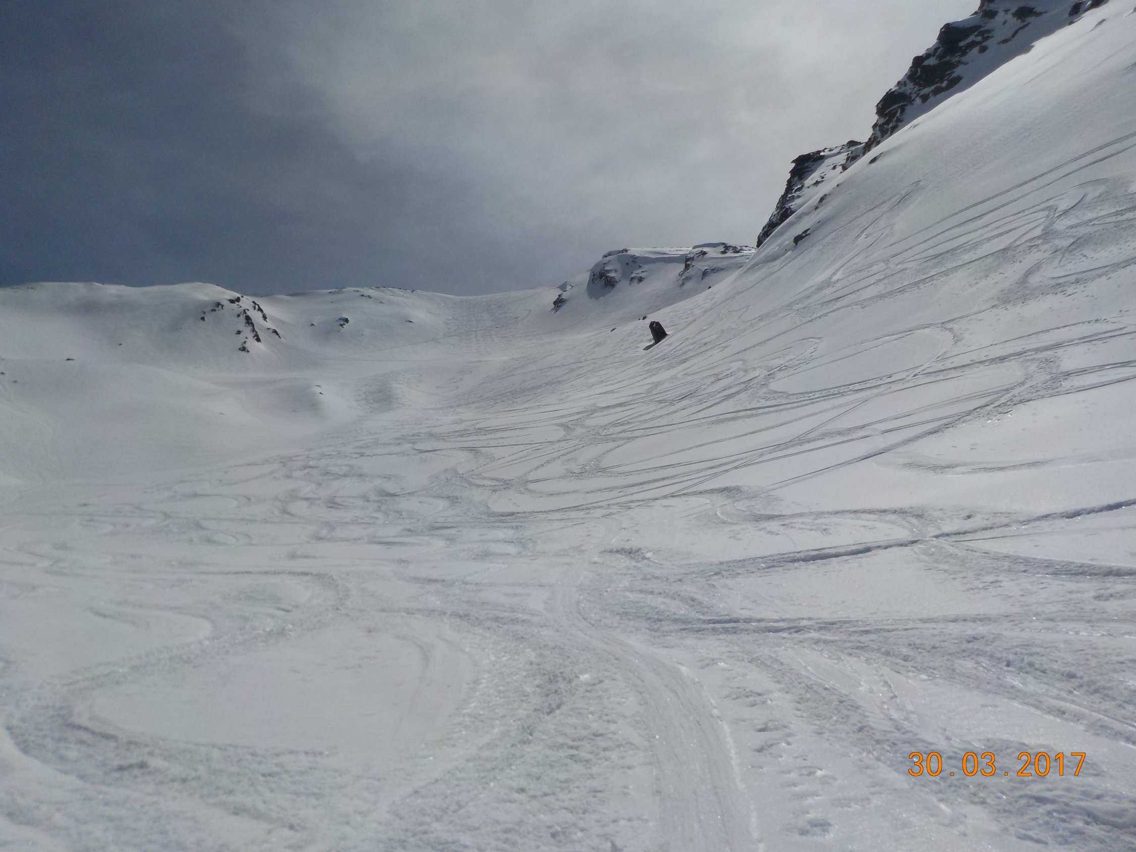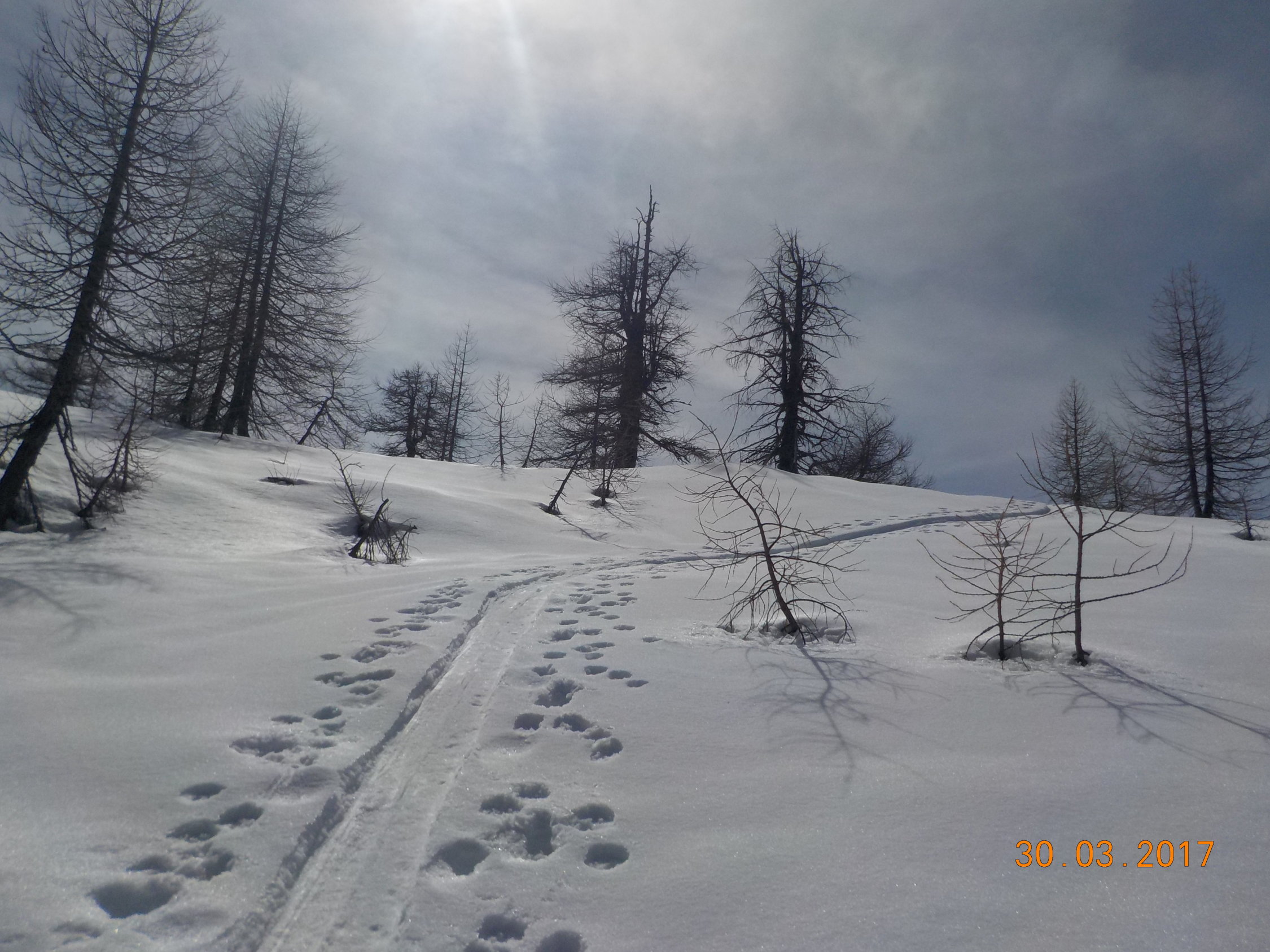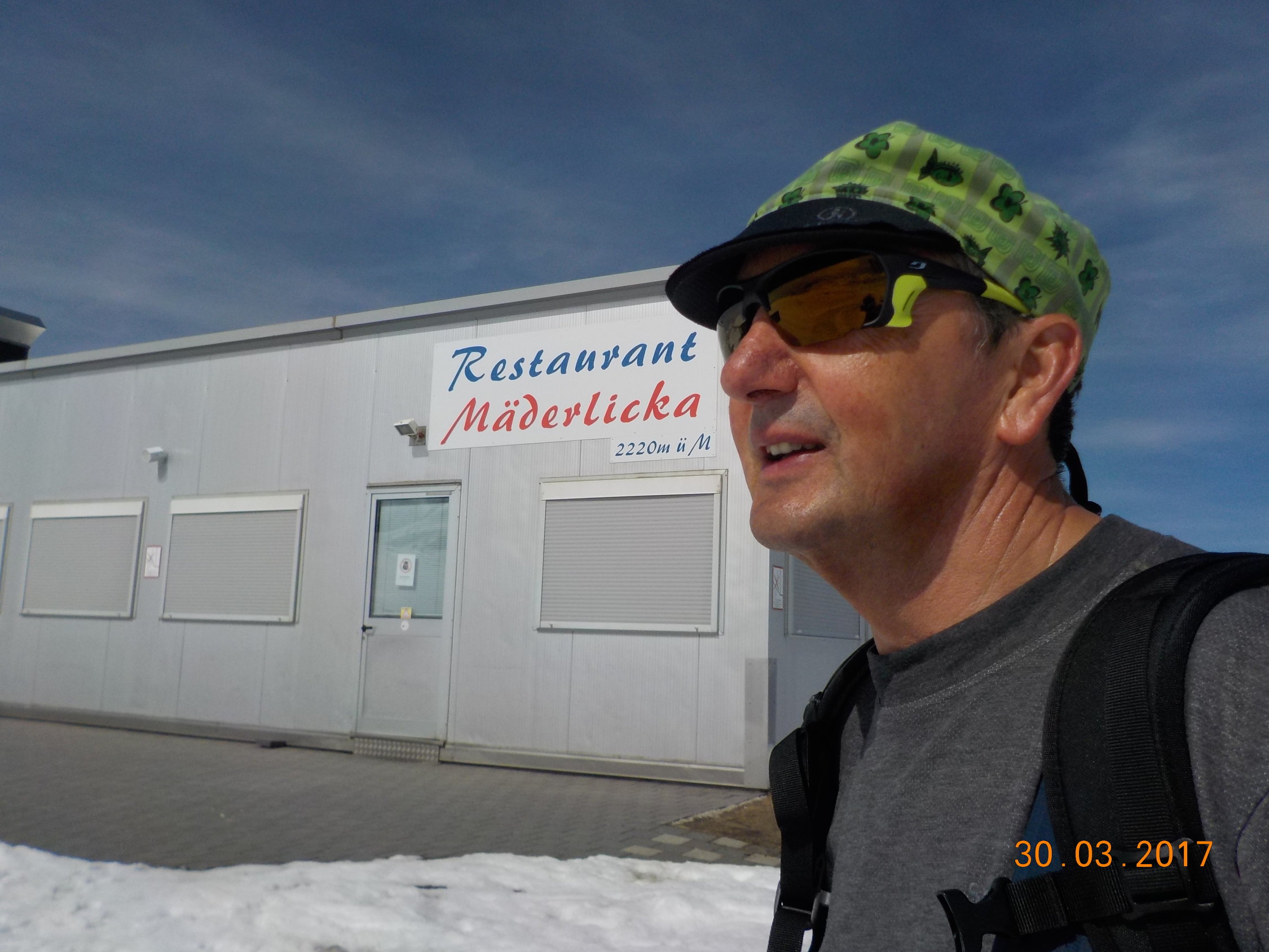 Die ersten 50 m aper. Aufstieg auf meistens kompaktem Sulzschnee bis zum Restaurant Mäderlicka. Mit jedem weiteren Meter wird der Schnee besser, schliesslich in Pulverschnee zur Mäderlicka.