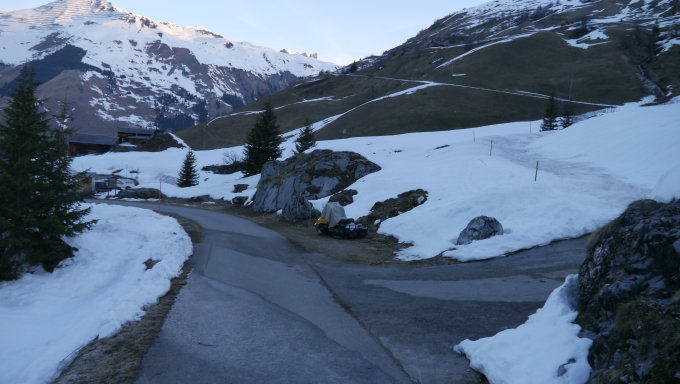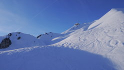 Von Parkplatz Matten sind wir um 7:30 gestartet. Harter Schnee bis zum Gipfel. Um 9:05 sind wir beim grossen Steinmann unter dem Gipfel angekommen. Rechts um den Gipfel herum bis zu Couloir, dort ist Skidepot. Gipfel wurde ohne Steigeisen (9:30)aber mit Pickel bestiegen.9:50 Abfahrt bis Parkplatz. Der Schnee ist nur ganz unten bei sonnigen Hängen weich geworden.
