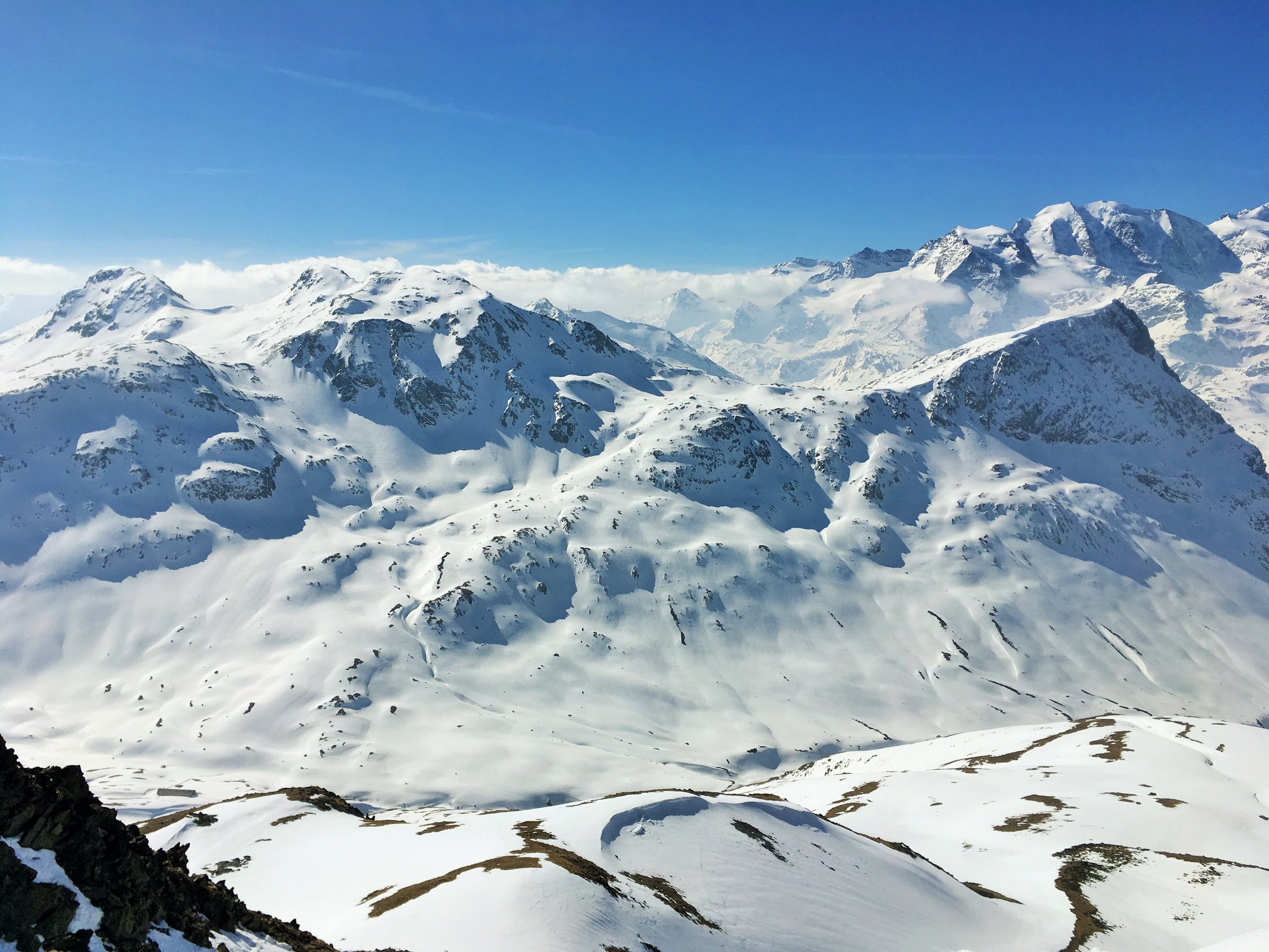 Tolle Aussicht zu den vielen Gipfelzielen wie Piz Albris, Piz Alv, Piz Minor, Piz dals Lejs usw.