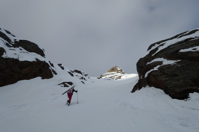 Die ganze Tour ist sehr gut zu begehen. Es hat nur unter dem 1. Couloir einen verhältnismässig kleinen Lawinenkegel. Das Couloir ist sehr gut ohne Steigeisen begehbar. Das 2. Couloir hat zur Zeit viel Schnee und die Felsen sind fast vollständig zugeschneit. Steigeisen und Pickel sinnvoll.