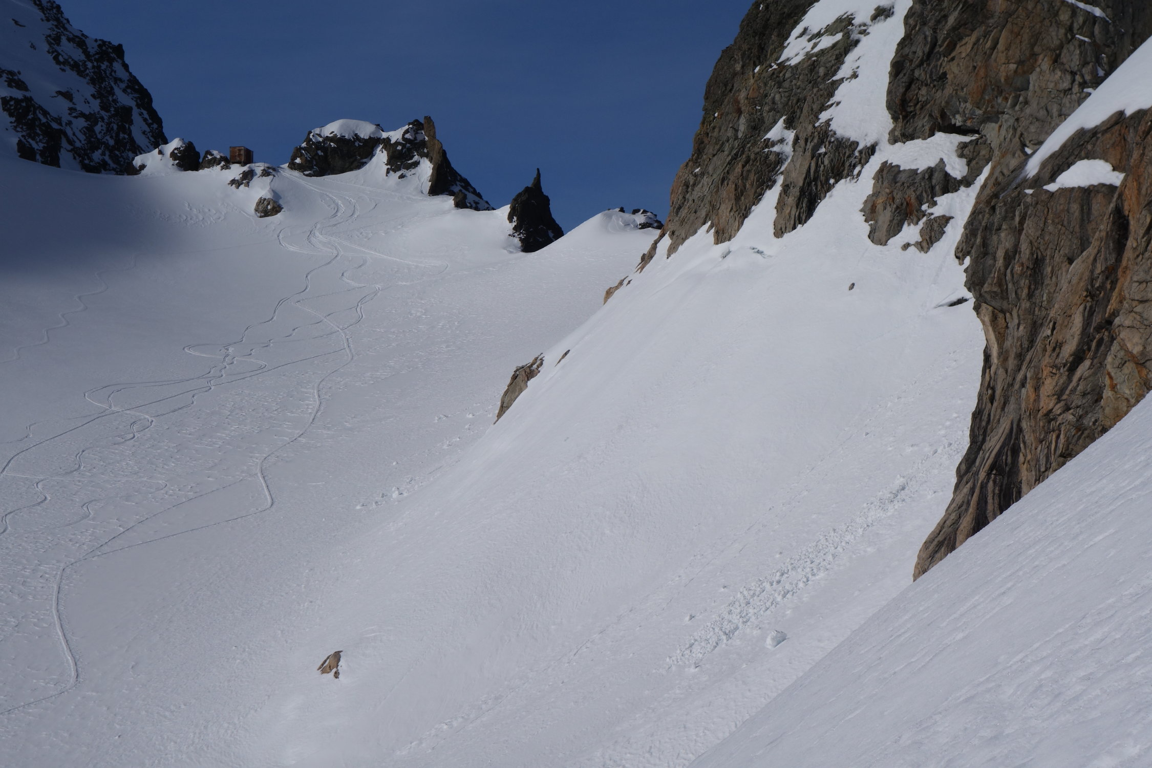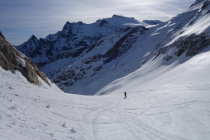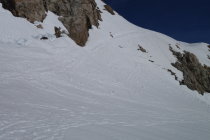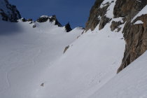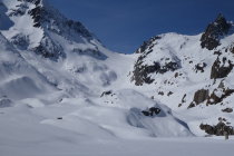 Wir sind von Feldmoos mit dem Bike nach Steingletscher gefahren, das Schmelzwasser auf der Passstrasse war um halb sechs zum Glück nicht gefroren, sonst wäre es vermutlich mühsam geworden. Danach mit den Ski weiter zum Gipfel. Die Schlüsselstelle ist gut machbar, es hat eine schöne Spur. Heute nur knapp 10 Türeler auf dem Giglistock! Abfahrt um 11:00 war perfekt, wunderbarer Sulzschnee von oben bis Umpol. (nordseitig leicht bruchharstig) Haben danach nochmals angefellt und sind hoch zur Tierberglihütte, wo wir übernachtet haben. Die Hüttenwarte Tina und Hanspeter haben sich hervorragend um uns gekümmert, besten Dank nochmals!