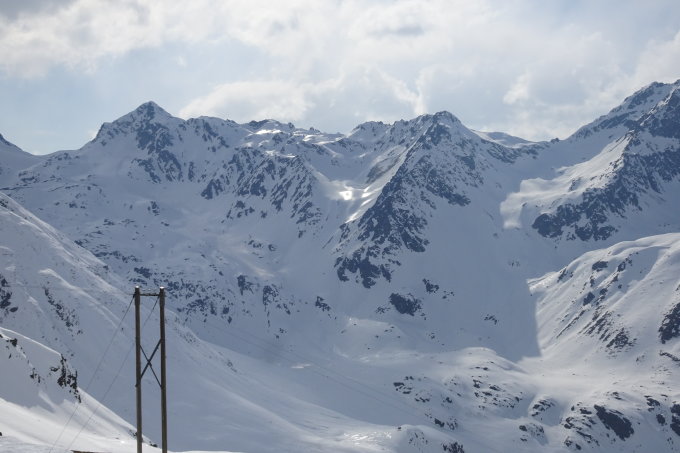 Start ca. 06:30Uhr ab Parkplatz Teufi, Höhe 1745m. Durchgehende Schneedecke. Lange Strecke zu gehen - ca. 6km mit 250hm bis Dürrboden. Dann geht es endlich etwas aufwärts. Es hat genug Schnee. Vom Piz Grialetsch eine grosse sehr lange Lawine wahrscheinlich vor ein paar Tagen abgegangn. Gute Aufstiegsspur bis zur Einsattelung "Fuorcla Barlas. Heute den ganzen Tag sehr windig. Besonders ab dem Fuorcla Barlas am Grat entlang hinauf stapfen mit sehr starken Böen, teilweise nicht gerade angenehm.