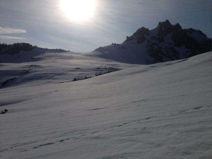 Bis Brätlistelle mit Auto. Von p. 1515 durchgehend mit Ski. Schöner Hart-Sulzschnee