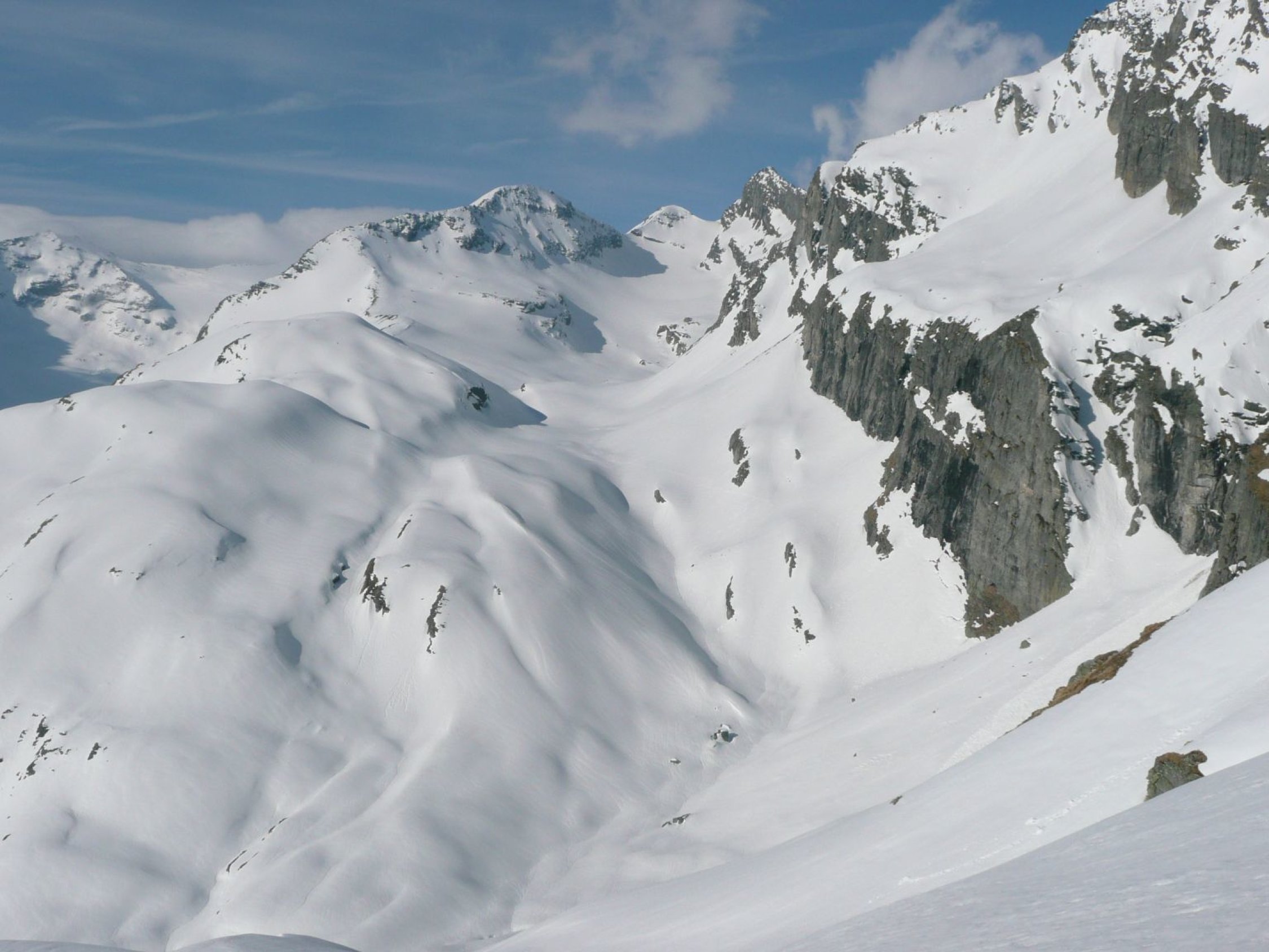 Wetter durch Föhnsturm schlechter als die letzten Tage. Aber wir hatten noch Glück: die Föhnmauer hing am Zapportkamm gegenüber und kam nur im Bereich des Chilchalphorns mal durch. Entsprechend stürmisch auf den Graten und Lücken. Schnee dadurch auch windgeprägt und durch verminderte Sonneneinstrahlung und Windeffekt erst spätes bzw. kein Auffirnen in den höheren Lagen. Aufstieg zur Höhberglücke komplett mit Harscheisen. Abfahrt über den Höhberggletscher mit wechselnden Verhältnissen aber insgesamt gut. Aufstieg zur Lorenzlücke schon stark mit Lawinenresten bestückt. Dadurch aber auch gut gangbar. Aufstieg zwischen 9:30 und 10:30 überraschend weit hoch mit Ski möglich, danach zu Fuß aber ohne Steigeisen; immer wieder Sonne im Hang sobald die Föhnmauer aufriss. Abfahrt Fanellgletscher tiptop. Abfahrt über Guraletsch nach Zervreila gut eingespurt im tollen Firn/Sulz.