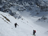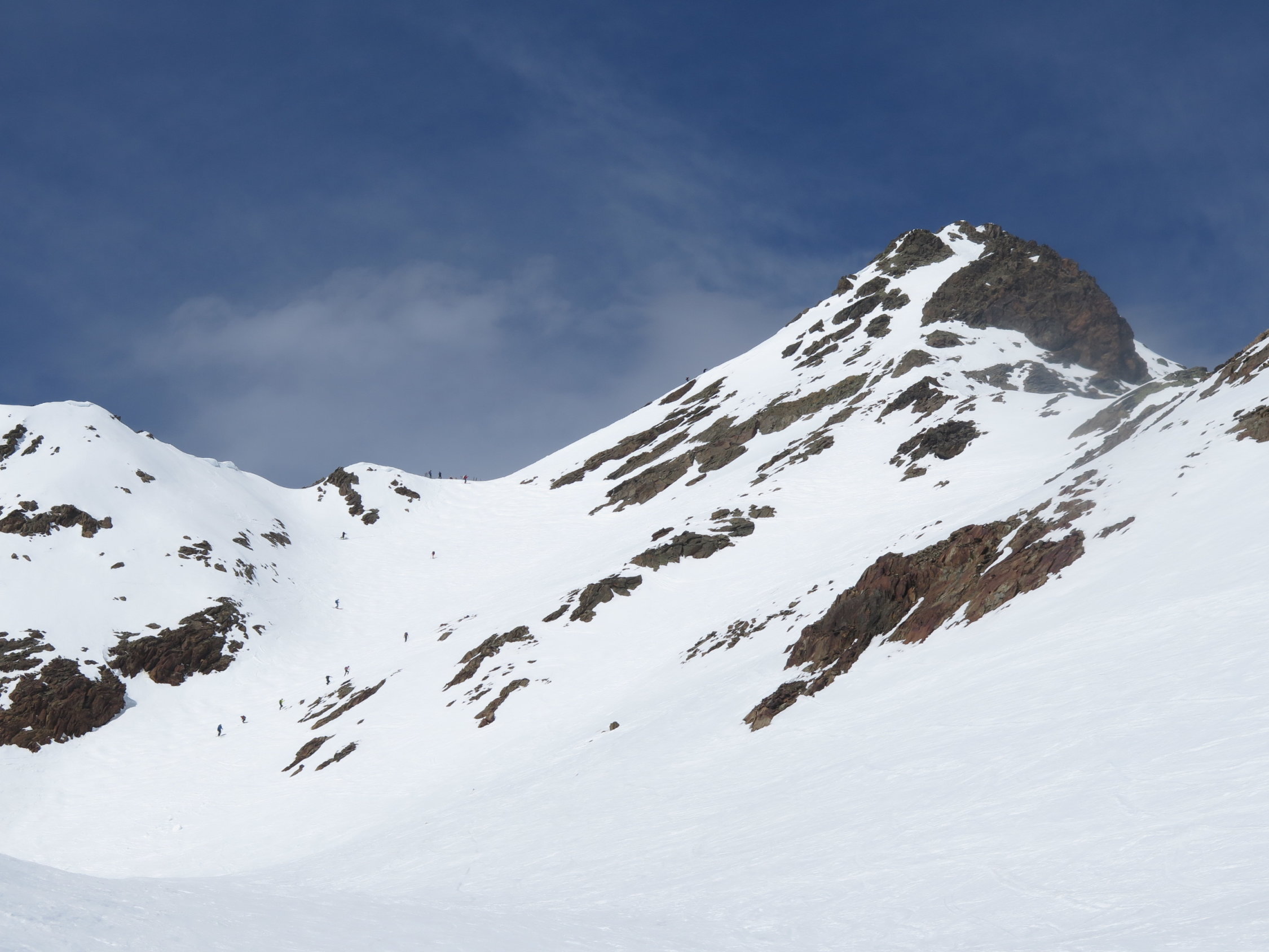 Sehr schöne Skitour, die in einer gewundenen, eleganten Linie den Gipfel erreicht.