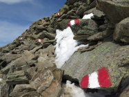 Allgemein gute Verhältnisse, im Kühtai auffallend mehr Schnee als tags zuvor in den Ötztalern um die Martin-Busch-Hütte. Sehr viele Leute unterwegs, manche sogar zu Fuß. Am steilen Gipfelhang oben im weichen Schnee etwas rutschig und dadurch etwas anstrengend, auch weil Spur von Herabfahrenden permanent weggefahren wird. Fußaufstieg zum Gipfelkreuz ab Sattel auf Wanderweg im Blockgelände gut machbar.