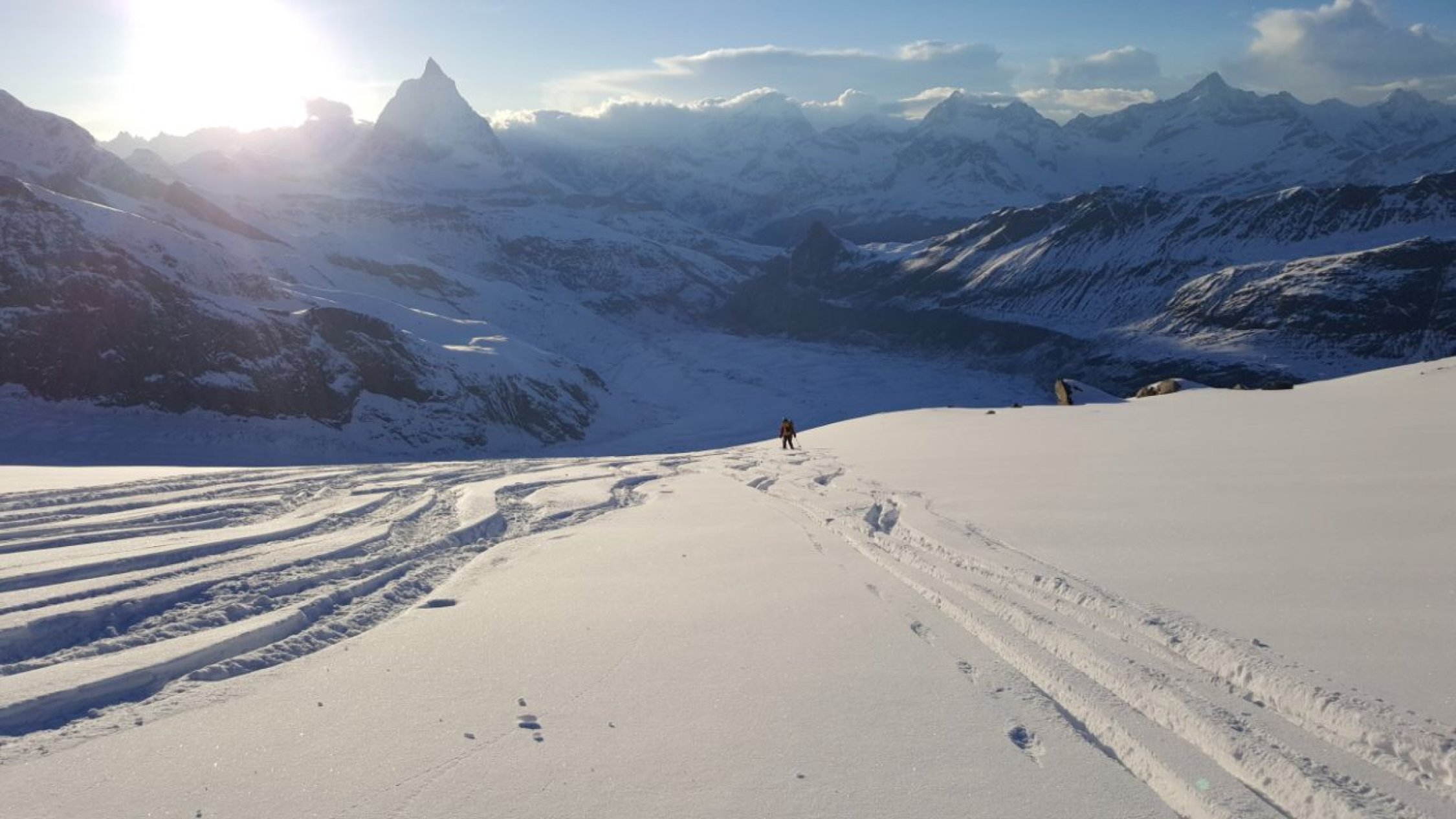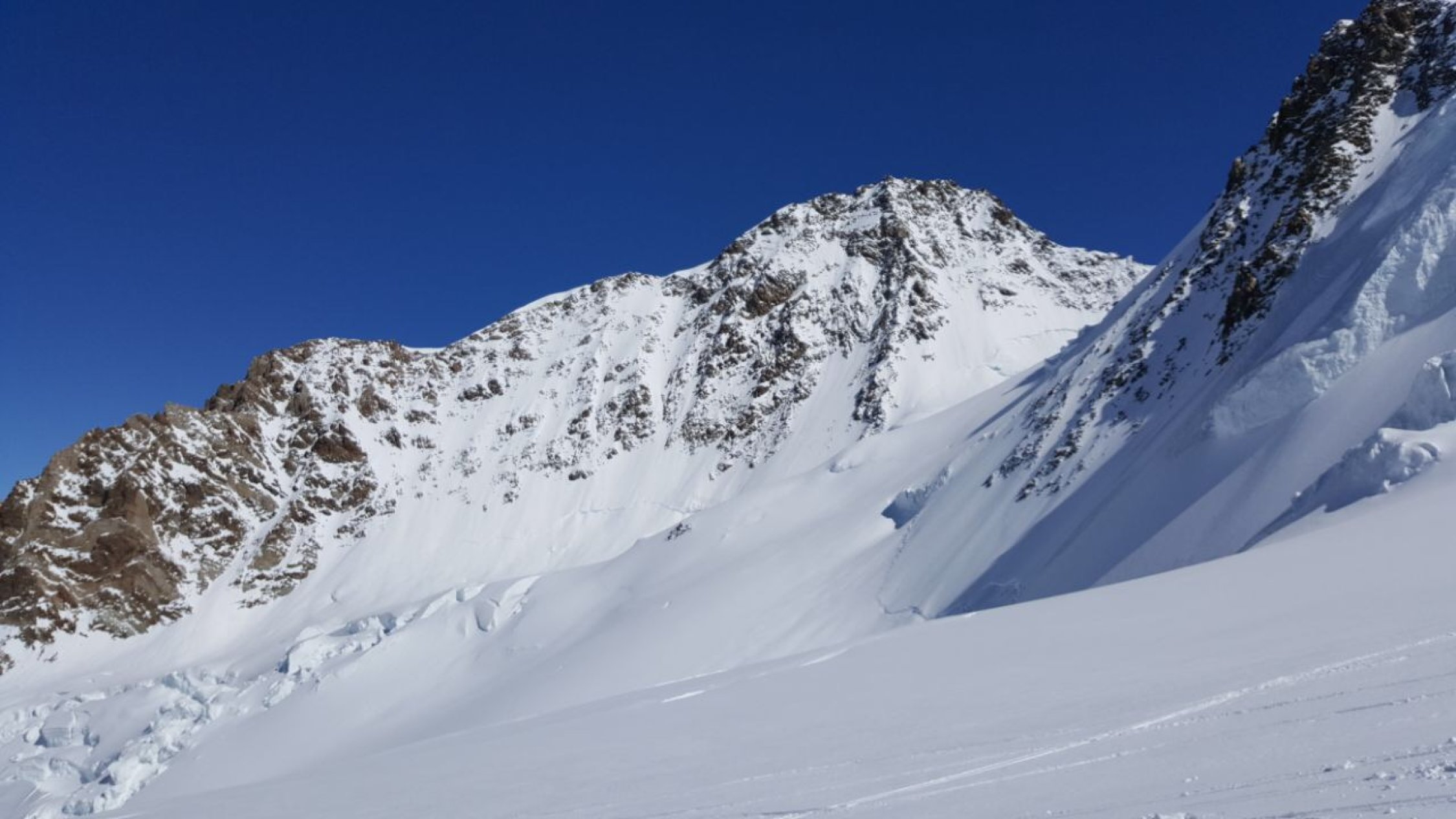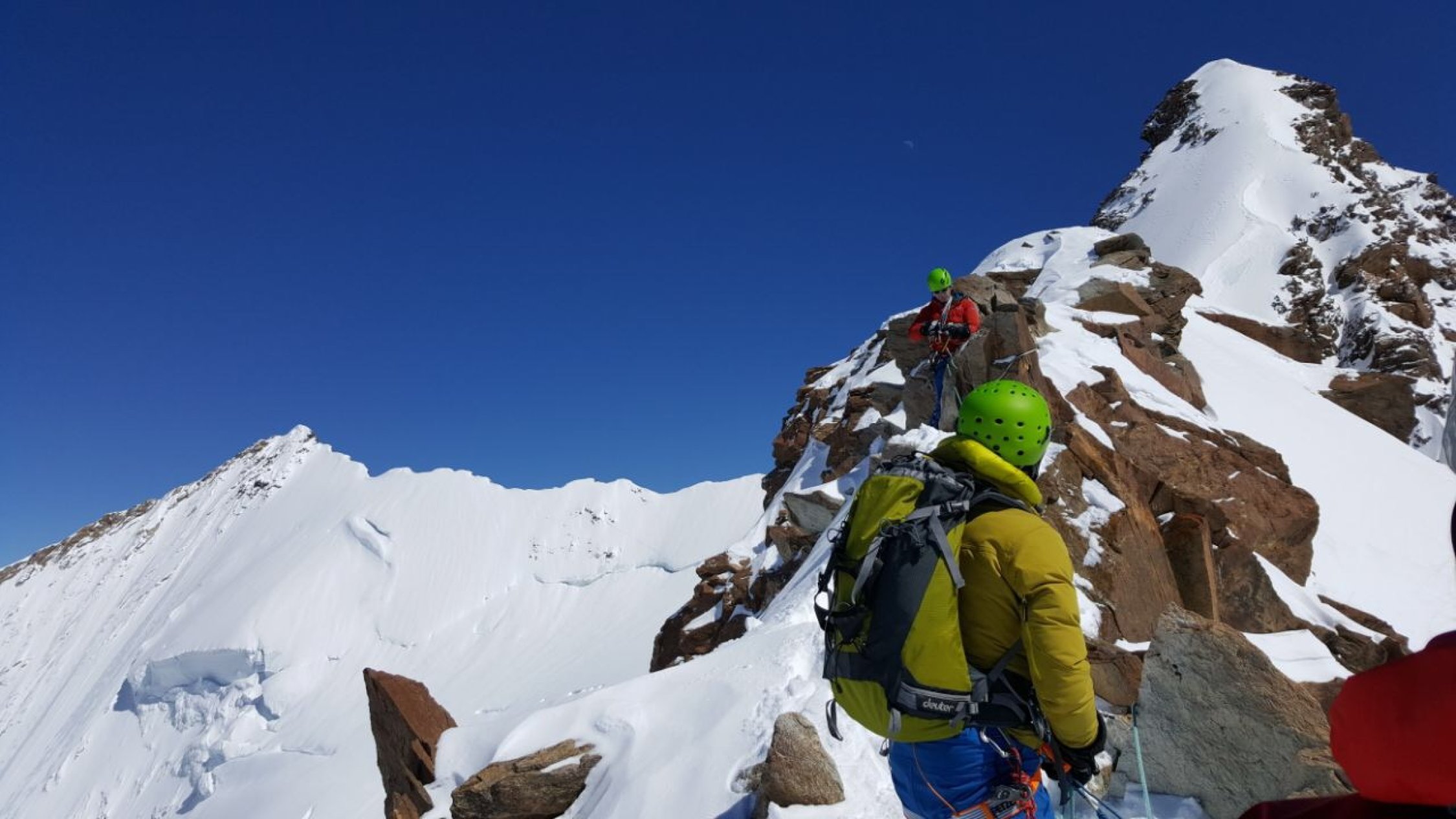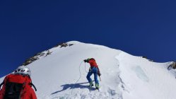 Neuschnee auf dem Grat-keine Spur- dort dadurch Blankeis teilweise unter dem Neuschnee versteckt deshalb etwas diffizile spurarbeit am Grat.