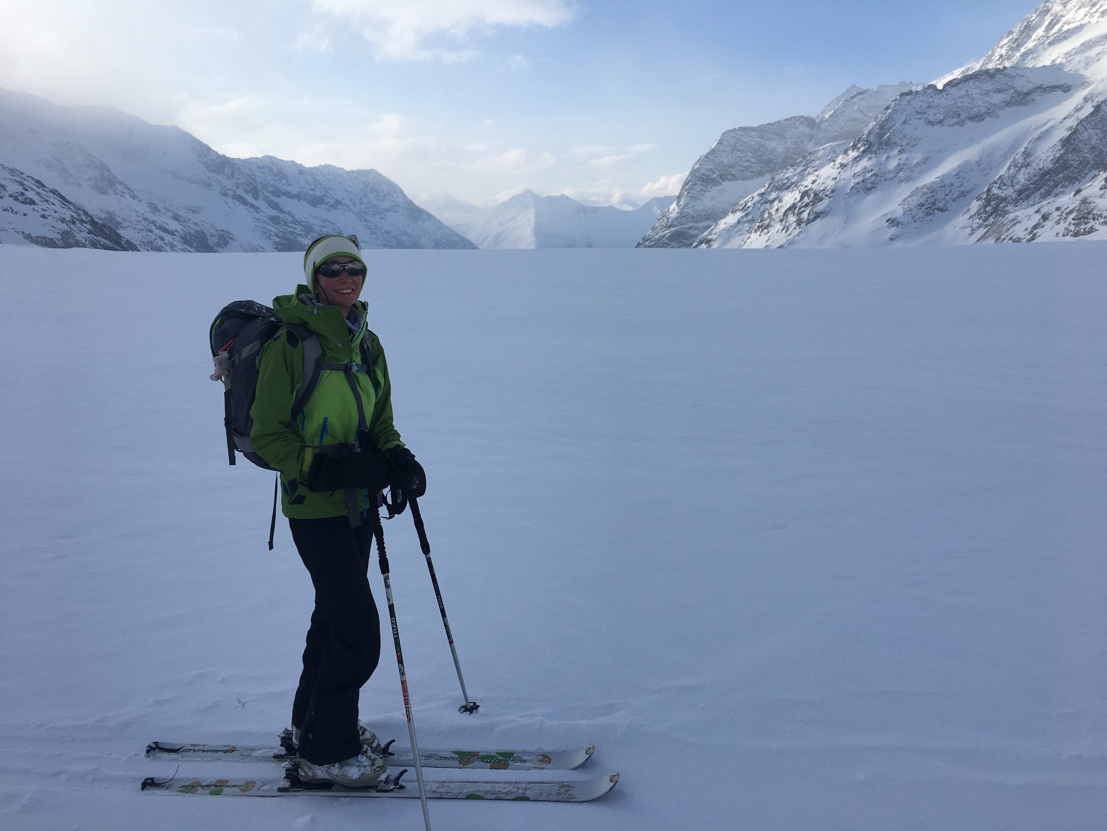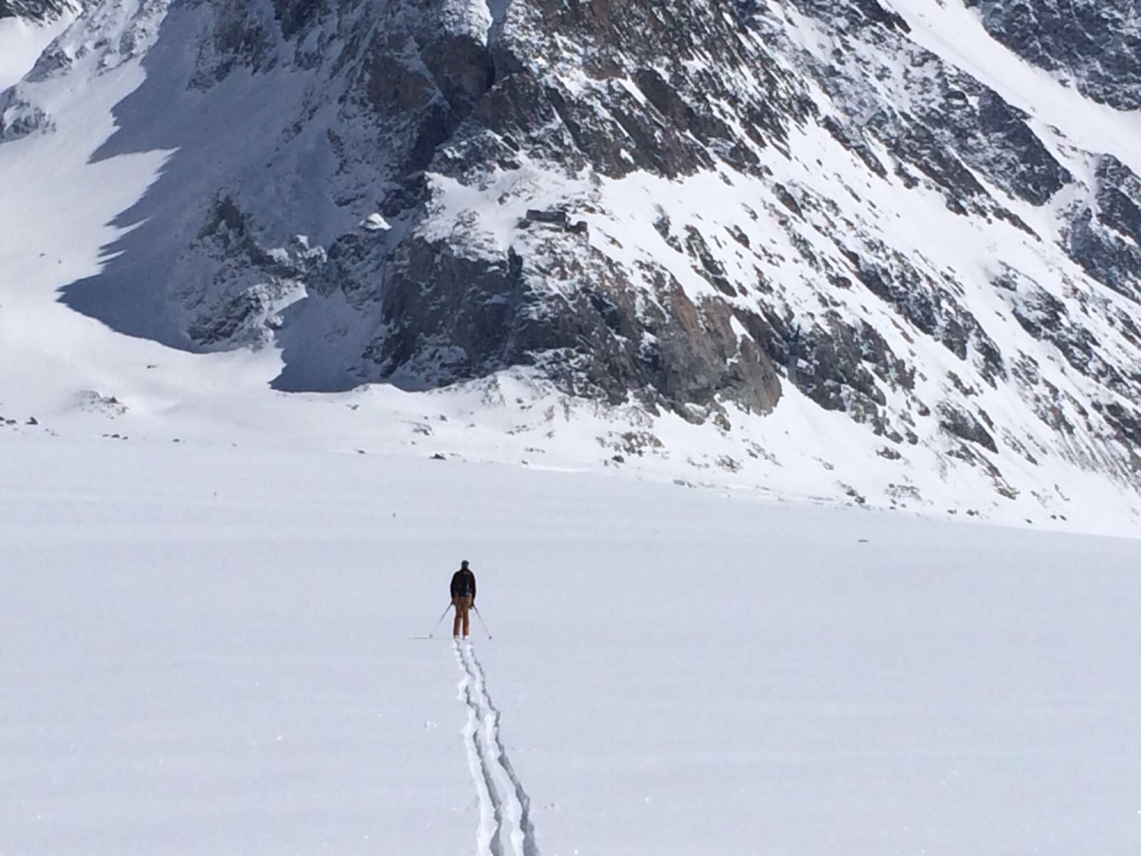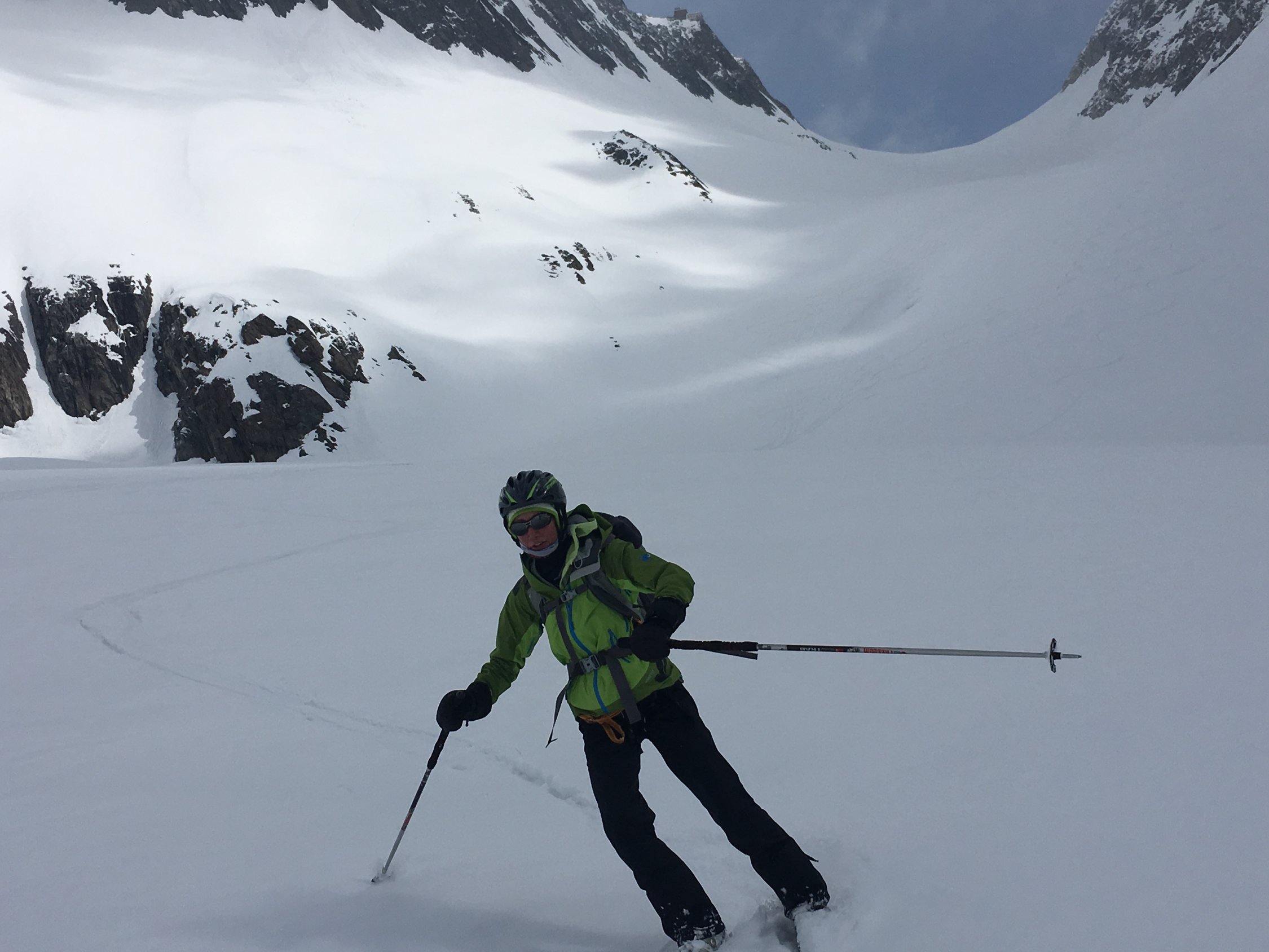 Montag; 3.April 2017: Jungfraujoch-Lauwihorn-Konkordiahütte. Am Lauwitor, 30 cm Pulverschnee, Abfahrt im oberen Bereich Pulver, unten bereits sulzig.