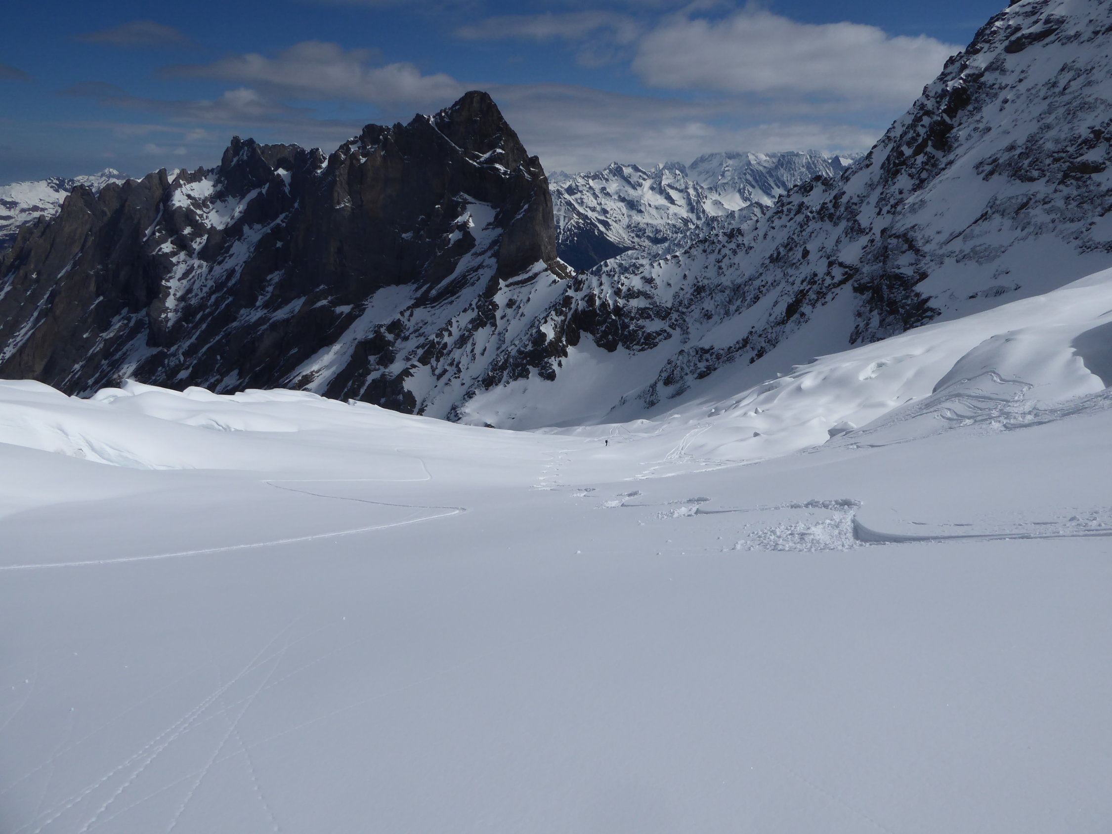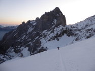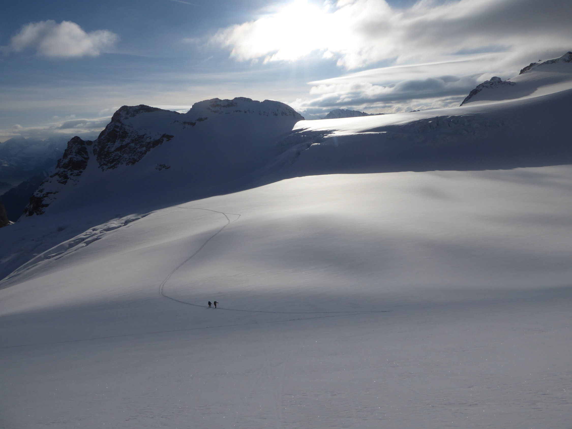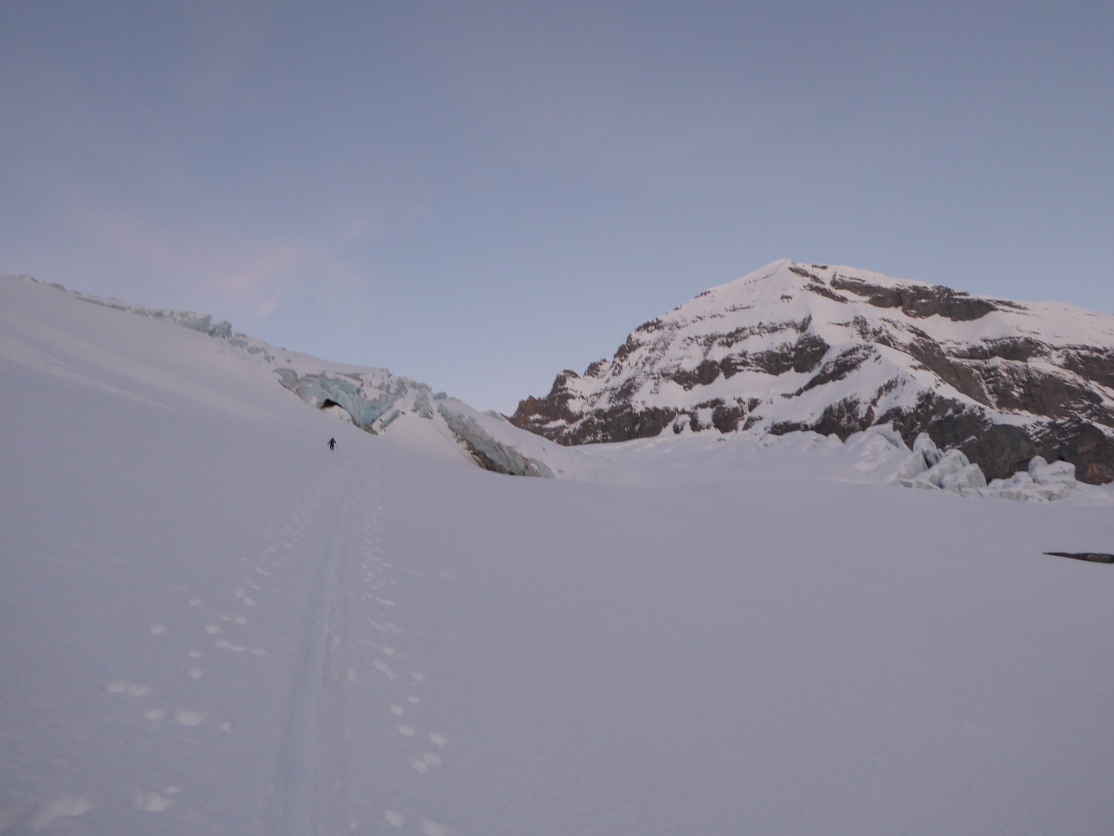 Start um 4 Uhr, zurück beim Parkplatz um 13.30 Uhr. Sehr gute Verhältnisse auf dem Gletscher.