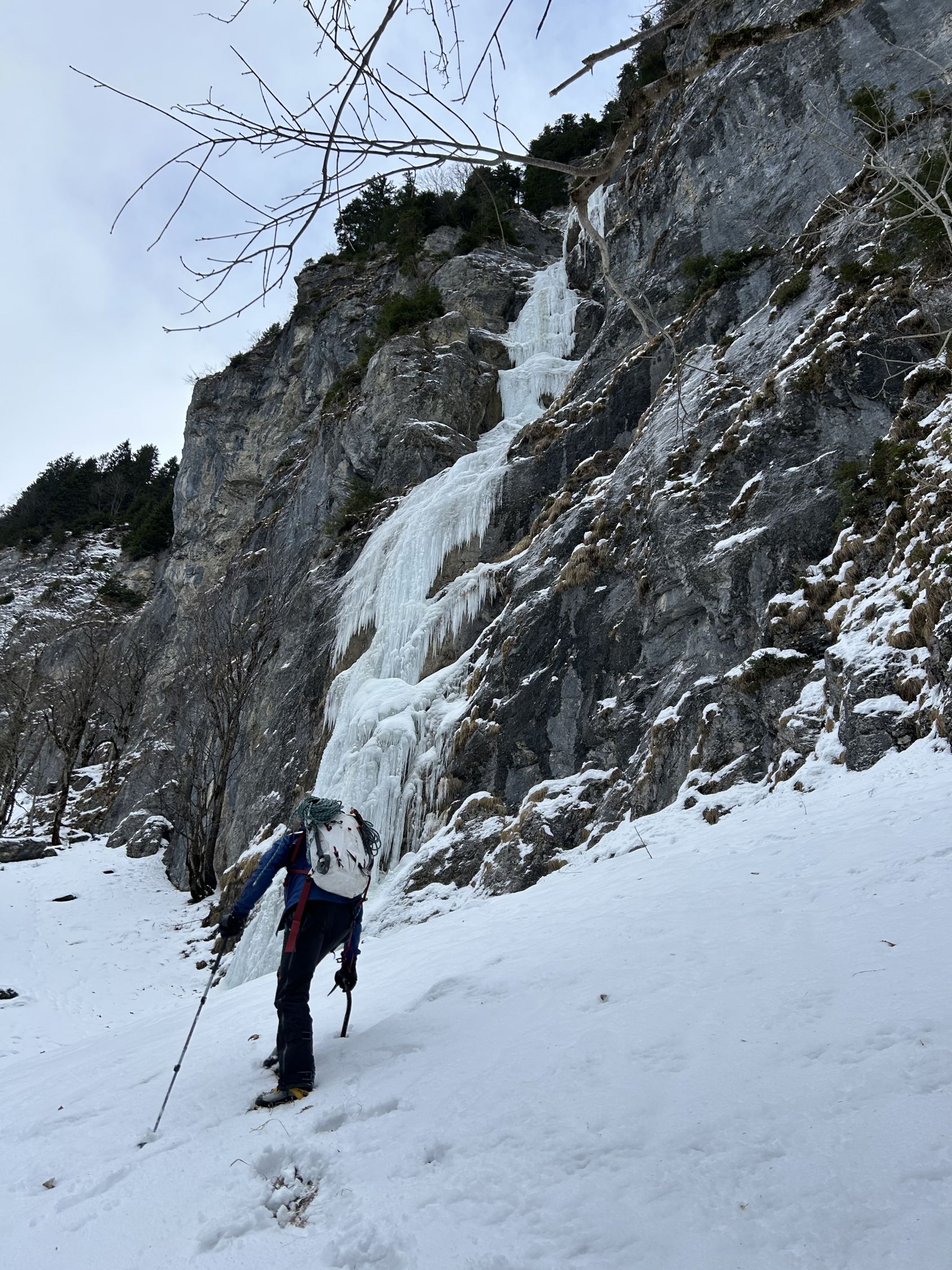 4. SL teilweise losgelöstes Eis, delikat. Gehört aber beim Eisklettern dazu. Aktuell vertretbar, nach Wärmeeinbruch sicher nicht mehr möglich.