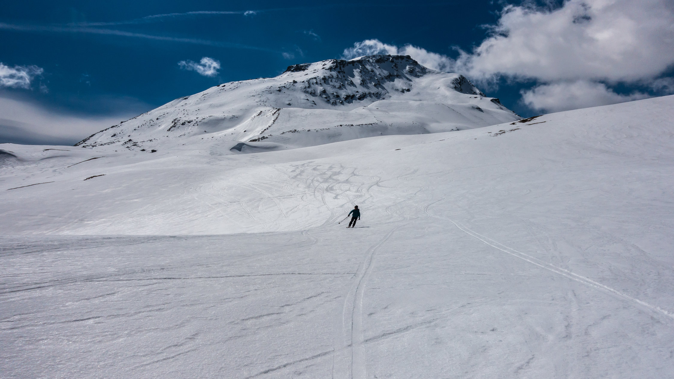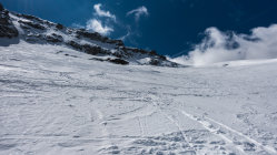Abfahrt um 13 Uhr, im oberen steilen Teil teils gedeckelter Pulver. Im flacheren unteren Teil dann absoluter Traumsulz bis zum Auto!