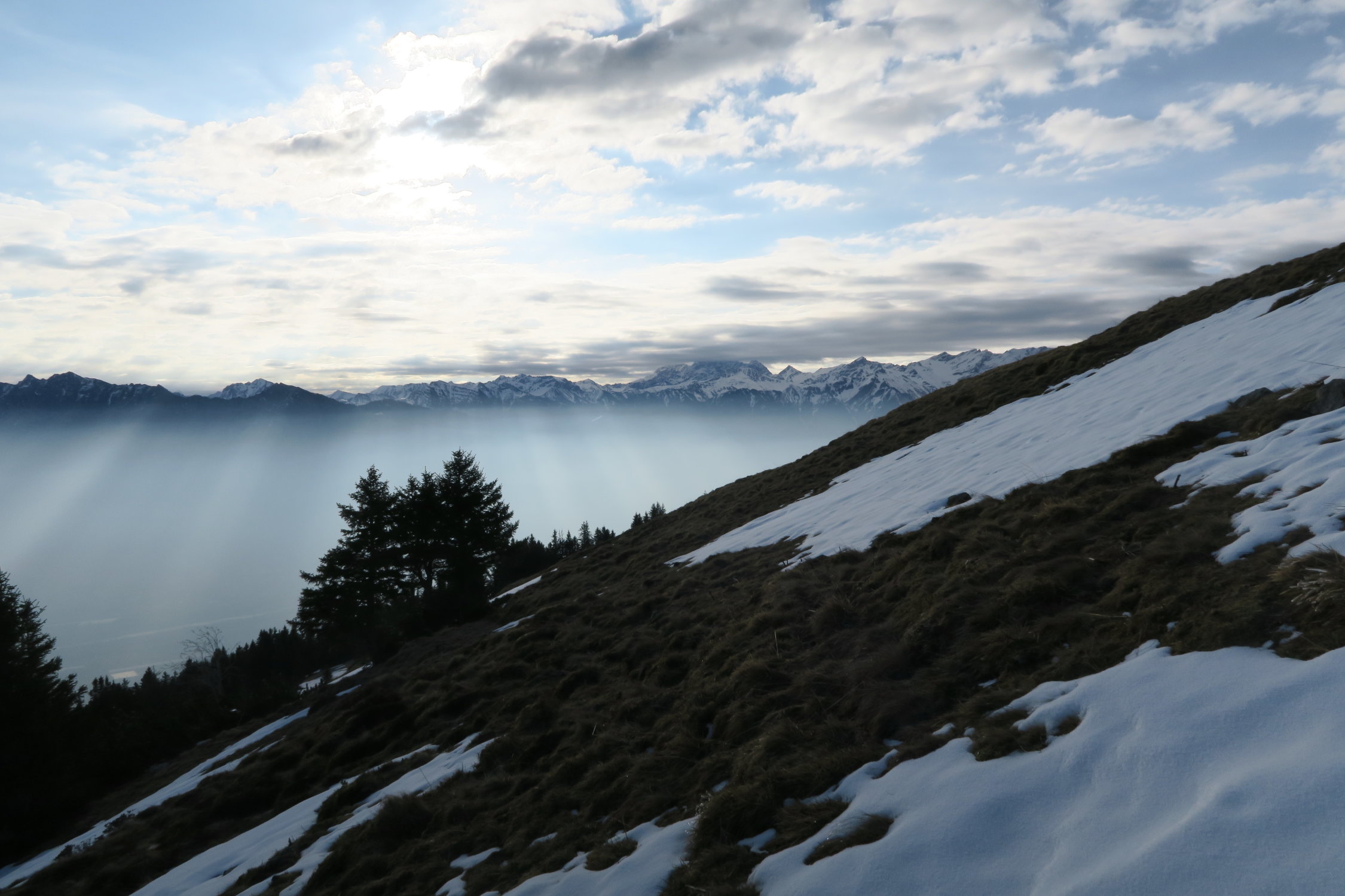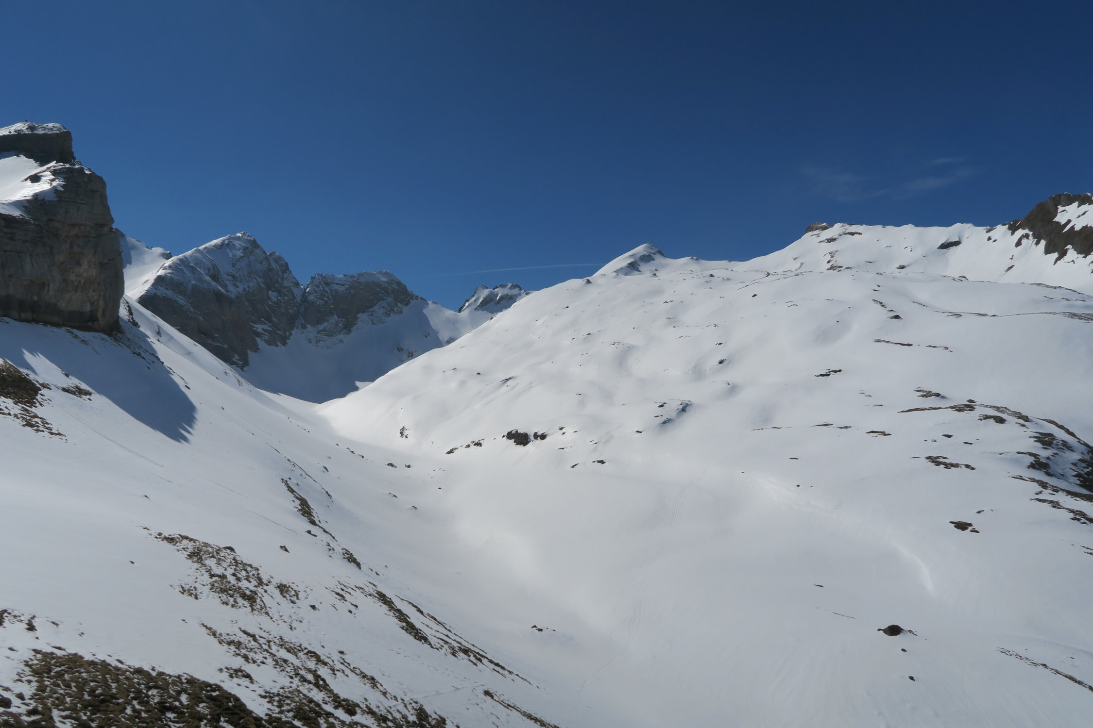 Start um 7 Uhr beim Berggasthof Malbun. Erst mal eine ca. einstündige Tragestrecke, danach nochmals abschnallen bei einer steilen südseitigen Querung. Aber dann waren die Zweifel wie weggeblasen: Ausreichend Schnee auf Fulfirst, Glännichopf und Rosswies. Sehr gute Bedingungen bei der Abfahrt um 11 Uhr vom Gipfel der Rosswies. Durch immer wieder durchziehende Bewölkung hielt der Firn bis in den Nachmittag.