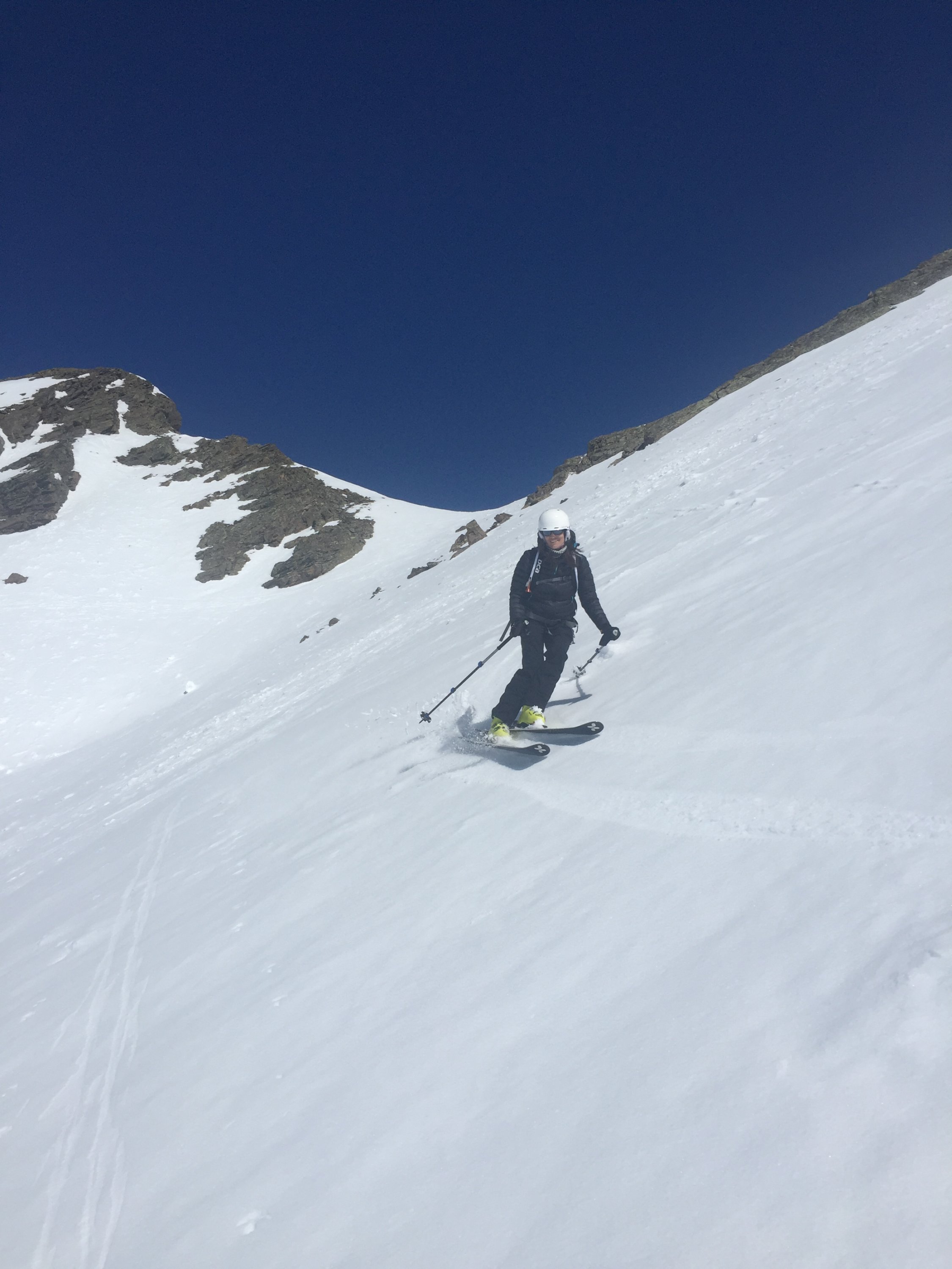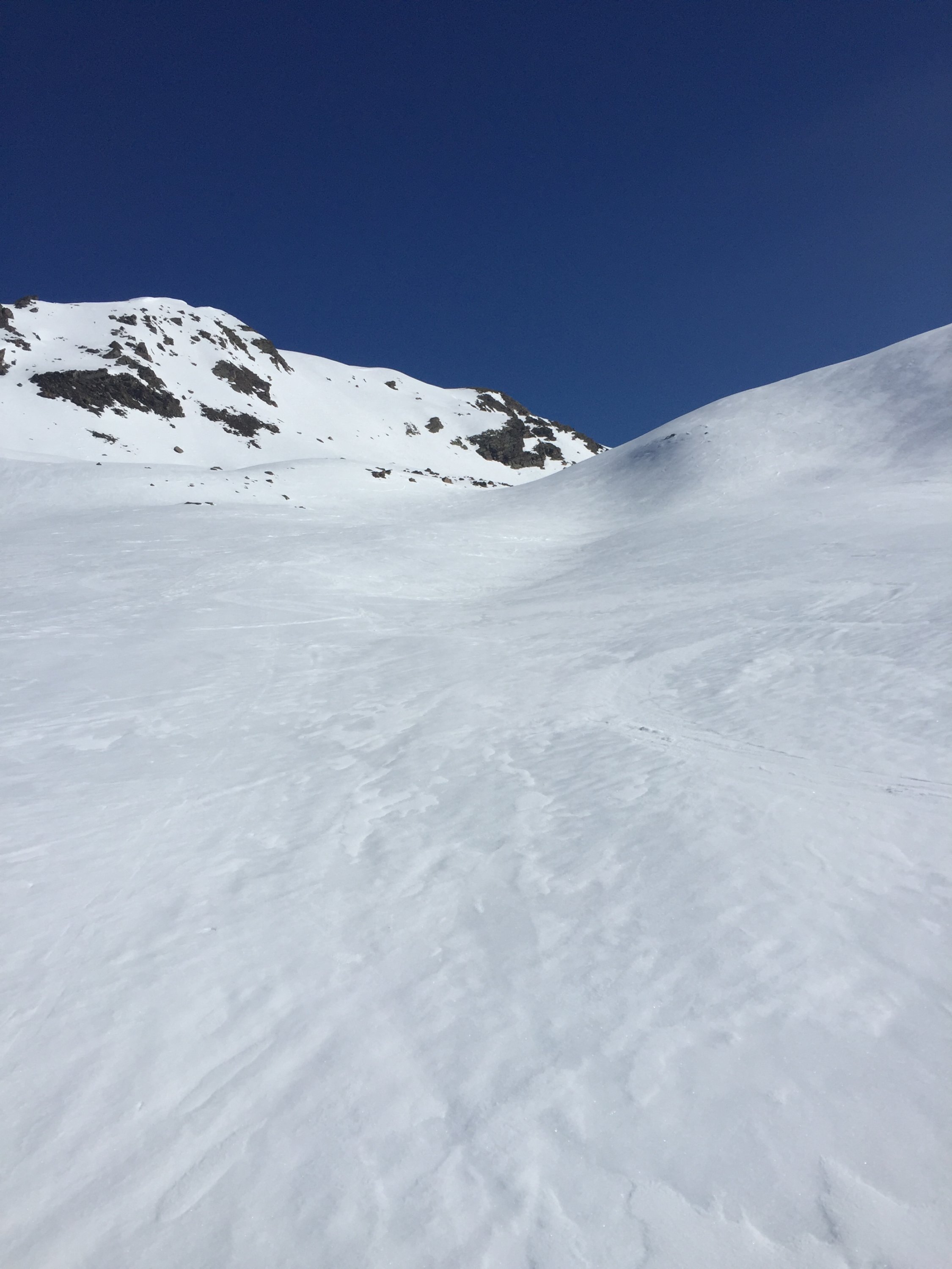 Der letzte, kurze Hang unter dem Sattel sehr hart, wir hatten die Ski getragen. Trittschnee, keine Steigeisen notwendig.