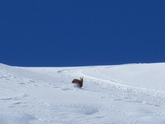 Wunderbare Verhältnisse. Im Wasserfallcouli formidabler Trittschnee. Steigeisen nicht aus dem Rucksack genommen.